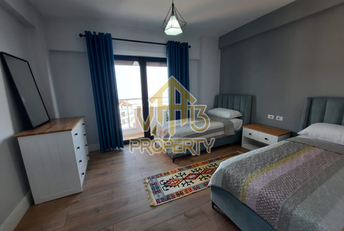 Apartamenti ndodhet ne katin e peste te nje pallati te ri, me ashensor ne Vollga me pamje nga deti. Eshte i organizuar ne nje holl qe ben shperndarjen ne dhomen e ndenjes se bashku me kendin e kuzhines, me dy dhome gjumi, nje tualet. Apartamenti eshte i mobiluar dhe i pajisur me te gjitha elektroshtepiaket per nje jetese sa me komode. Zona ne te cilen ndodhet ofron te gjitha fasilitetet e nevojshme. Per nje vizite ne prone apo ne prona te ngjashme na kontaktoni.