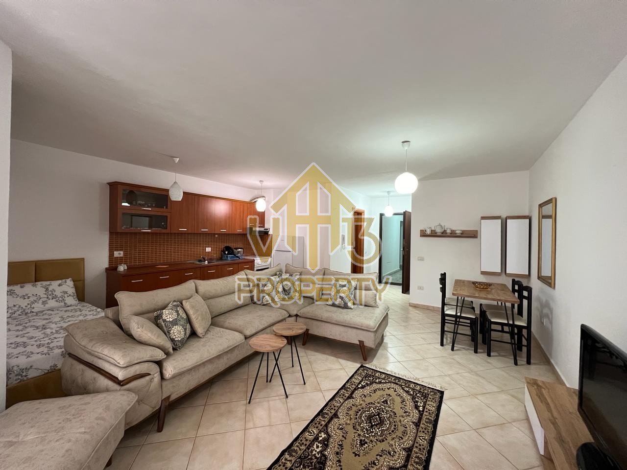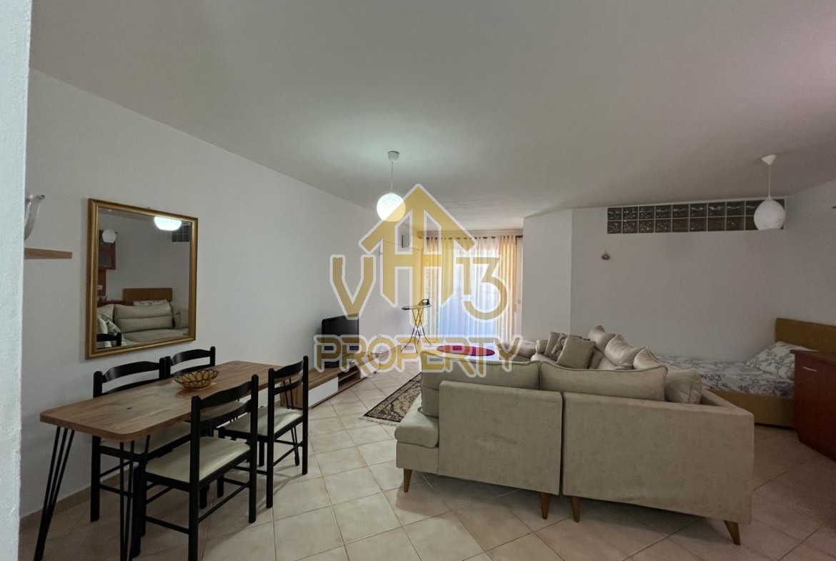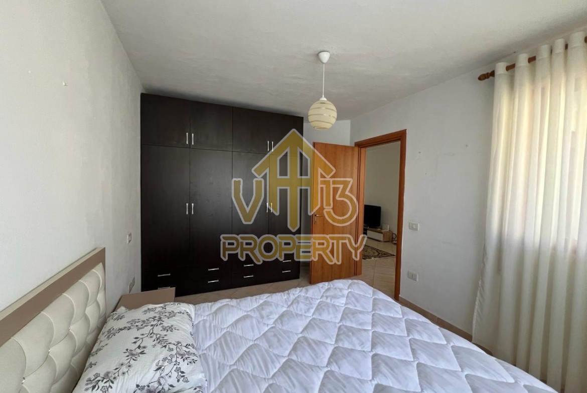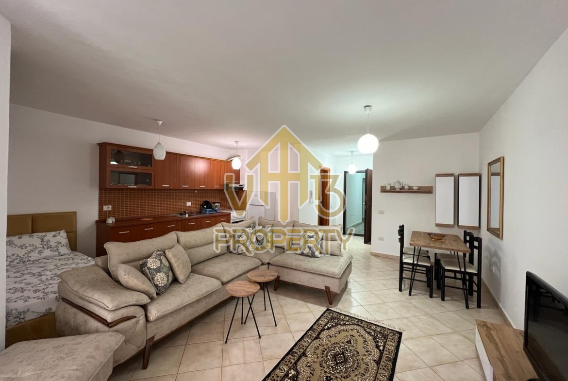 Apartamenti ndodhet ne nje nga zonat me relaksuese dhe te bukura te qytetit. Ka nje siperfaqe te totale prej 80 m2. Eshte i organizuar ne nje koridor i cili ben shperndarjen ne dhomen e ndenjes se bashku me kendin e kuzhines, nje dhome gjumi, nje tualet dhe nje ballkon. Apartamenti eshte i arreduar me te gjitha pajisjet elektroshtepiake. Zona ne te cilen ndodhet ofron akses ne te gjitha fasilitetet e nevojshme, ideale per nje jetese te qete dhe komode. Per nje vizite ne prone apo ne prona te ngjashme na kontaktoni.