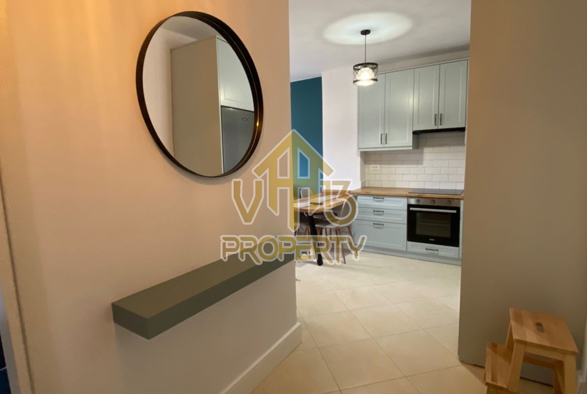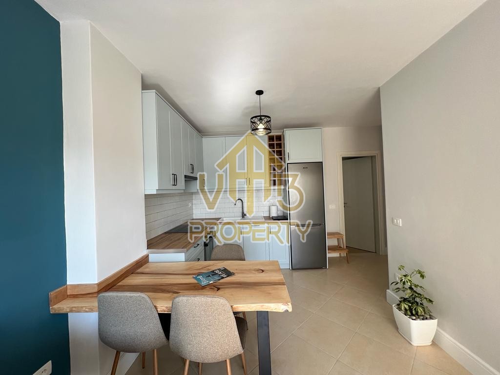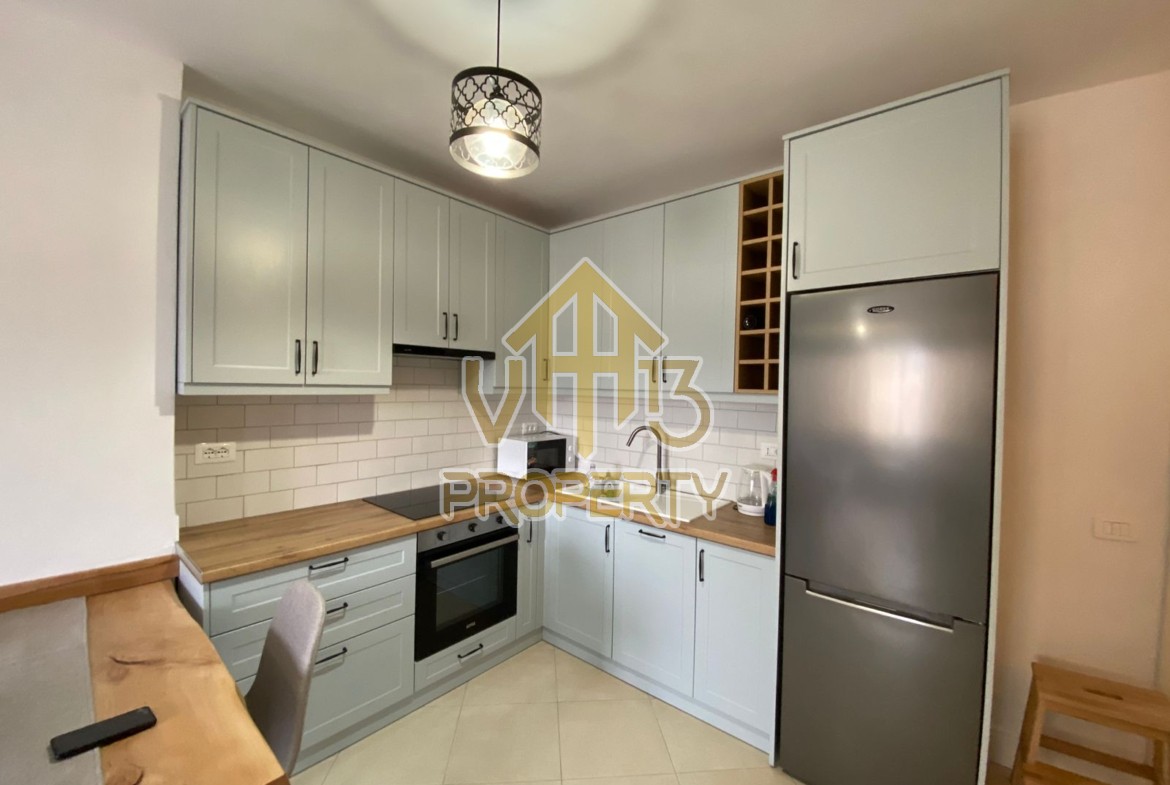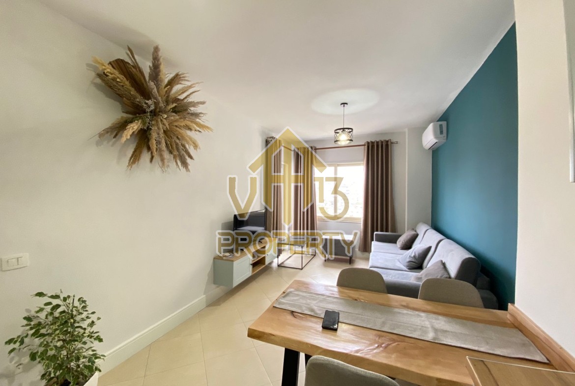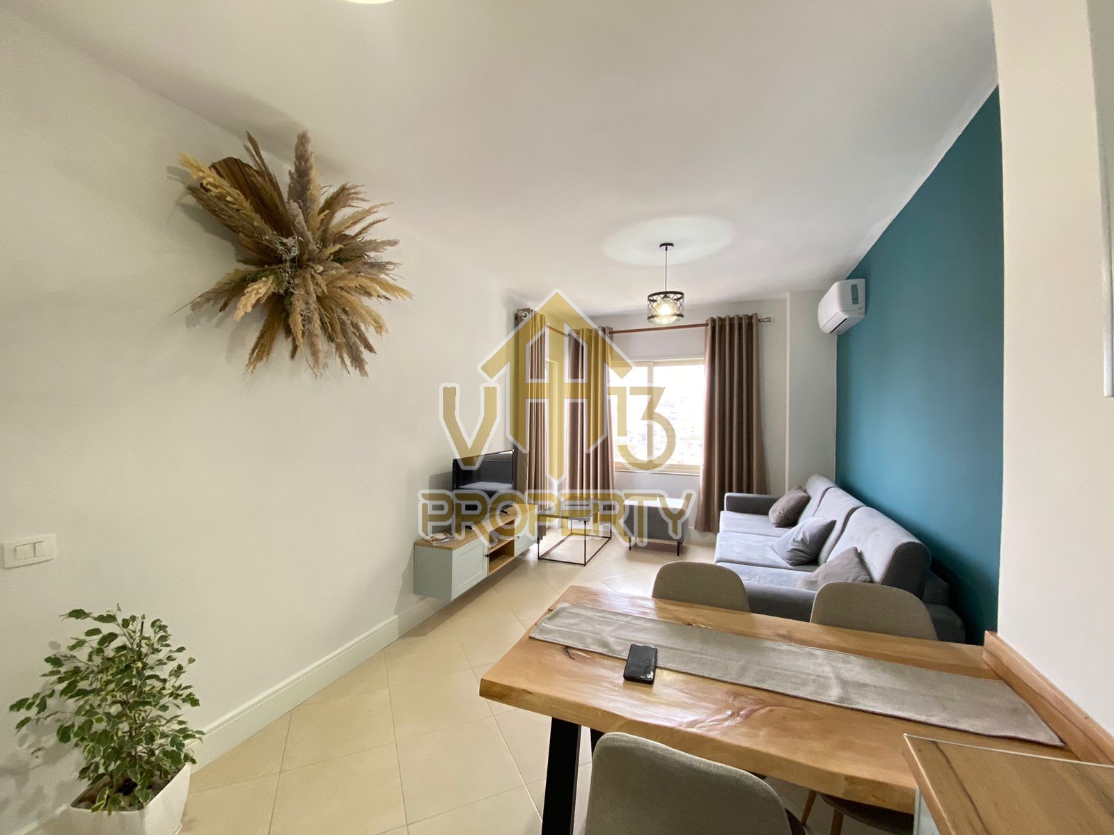 Apartamenti ka nje siperfaqe te brendshme prej 51.3 m2 dhe siperfaqe totale 59 m2 .Ndodhet ne katin e nente te nje pallati te ri, te pajisur me ashensor dhe me administrim. Organizohet ne nje dhome ndenje se bashku me kendin e kuzhines, nje dhome gjumi, nje tualet dhe nje ballkon. Apartamenti eshte i arreduar deri ne detaje me nje investim te ri, i cili ofron nje jete komode. Ndodhet ne nje nga zonat me te mira te qytetit qe ofron akses ne te gjithe fasilitetet e nevojshme. Eshte i pajisur me certifikate te rregullt pronesie. Per nje vizite ne prone apo ne prona te ngjashme na kontaktoni.