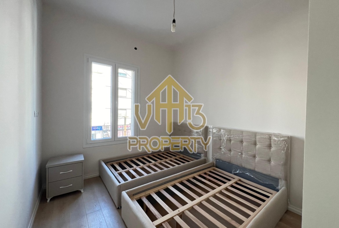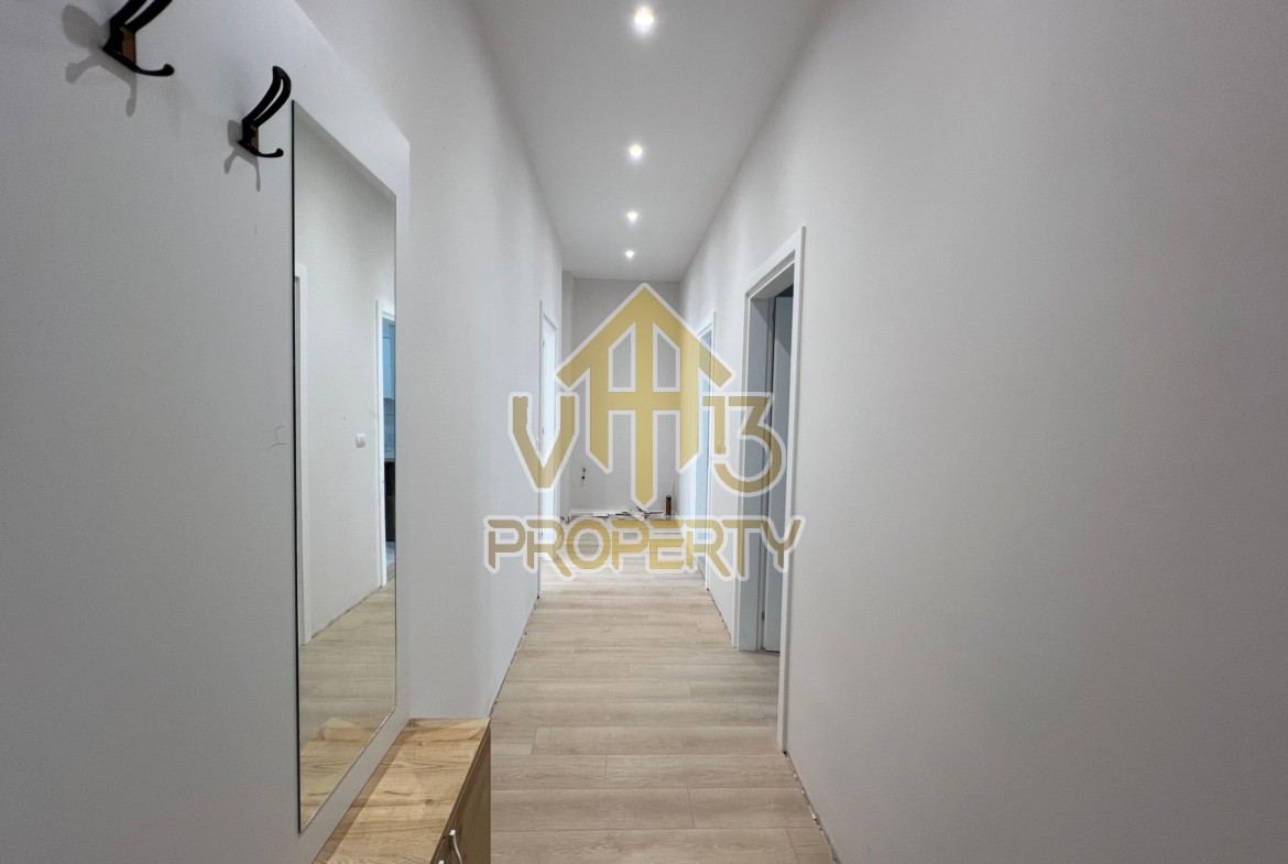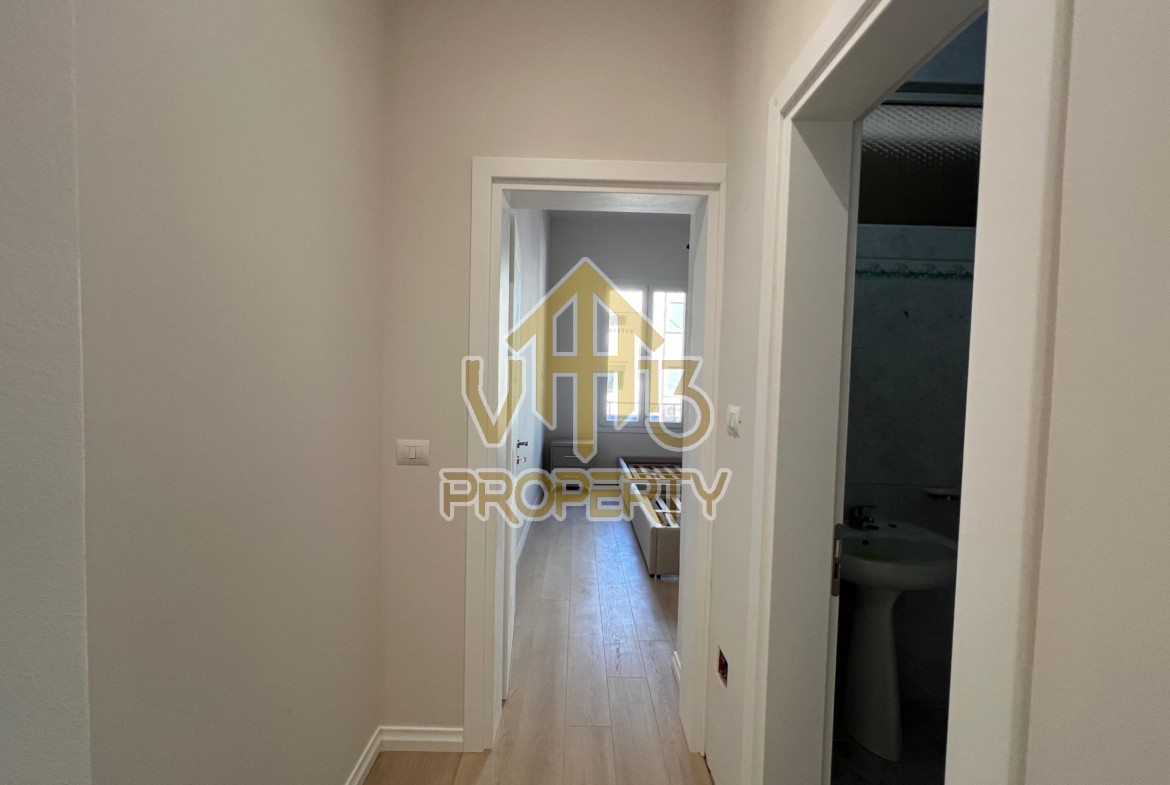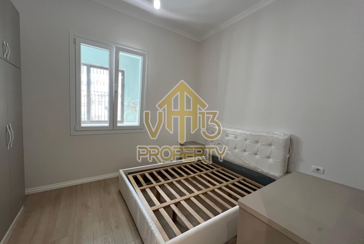 Apartamenti ndodhet ne qender te qytetit. Ka nje siperfaqe totale prej 100 m2 dhe ndodhet ne katin e dyte te nje pallati te mirembajtur. Eshte i organizuar ne nje koridor i cili ben shperndarjen ne dhomen e ndenjes, kuzhine te vecuar, dy dhoma gjumi, nje tualet dhe nje ballkon. Ne apartamenti jane bere punime cilesore, parket, sistem ndricimi. Zona ne te cilen ndodhet ofron akses ne te gjitha fasilitetet e nevojshme, ideale per nje jetese komode. Disponon dokumentacion te rregullt hipotekor. Per nje shoqerim ne prone ju ftojme te na kontaktoni!