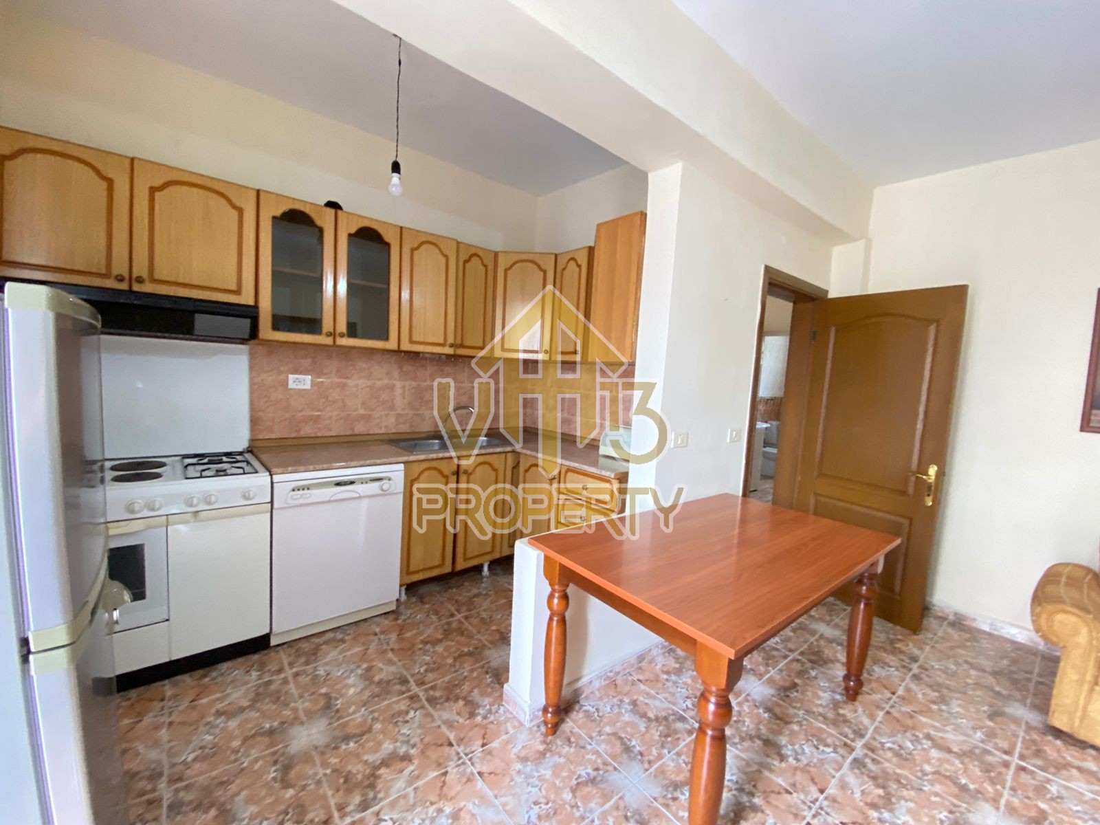 Apartamenti organizohet nga korridori hyrës, në ambientin e ndenjes së bashku me këndin e gatimit, dy dhoma gjumi dhe nje tualet. Apartamenti ndodhet në katin e trete të një pallati të mirembajtur tre katesh. Zona në të cilën ndodhet apartamenti është një ndër zonat më të preferuara per banim. Pallati ka nje pozicion perfekt, me akses të drejtpërdrejtë ndaj shërbimeve si: shkolla, klinika, supermarkete, bare, banka, transport urban etj. Sipërfaqe e apartamentit eshte 80 m². Per nje vizite ne prone apo ne prona te ngjashme na kontaktoni!
