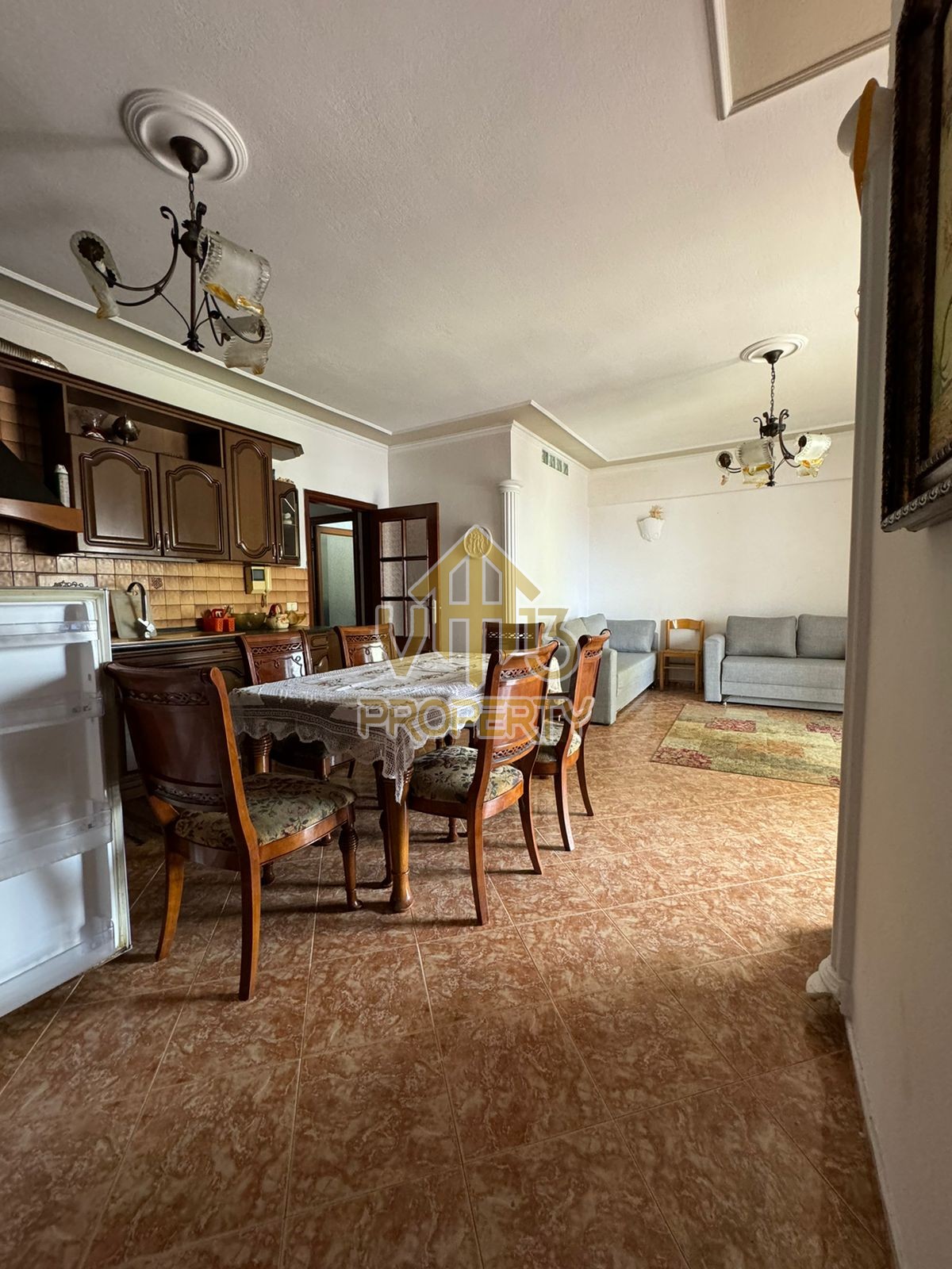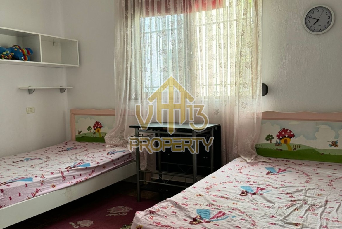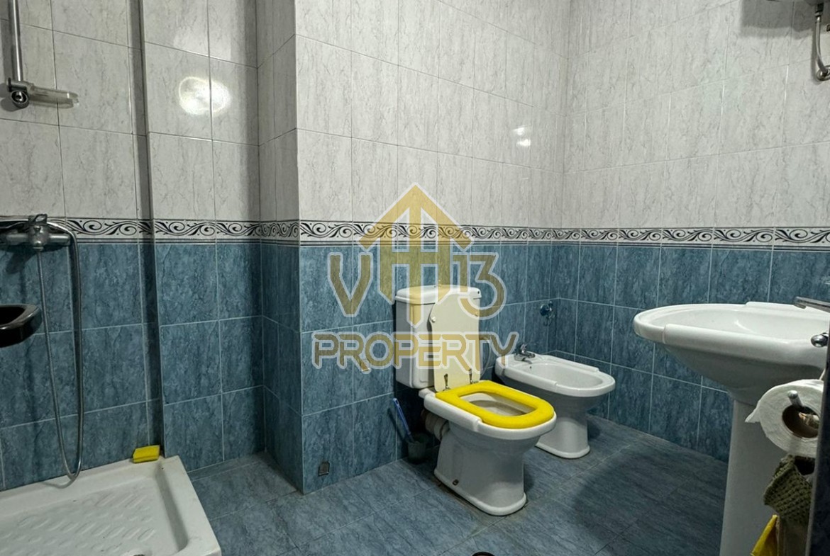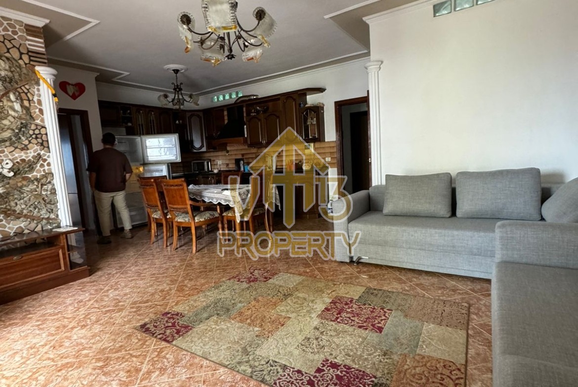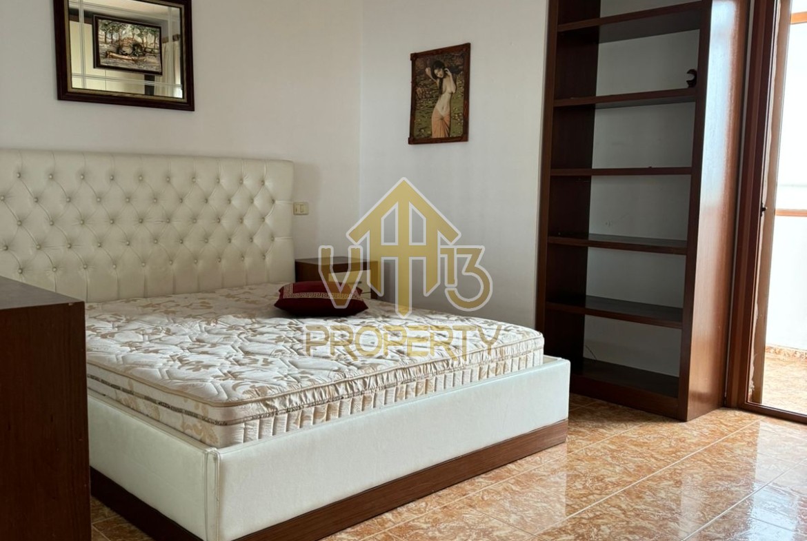 Apartamenti ndodhet prane Markates. I organizuar ne nje dhome ndenje se bashku me kendin e kuzines, dy dhoma gjumi, dy tualete dhe dy ballkone . Apartamenti ndodhet ne katin e shtate te nje pallati te ri, te pajisur me ashensor dhe administrim te rregullt. Siperfaqja totale e apartamentit eshte 110 m2. Apartamenti eshte i mobiluar me te gjitha kushtet e nevojshme. Per nje vizite ne prone apo ne prona te ngjashme na kontaktoni.