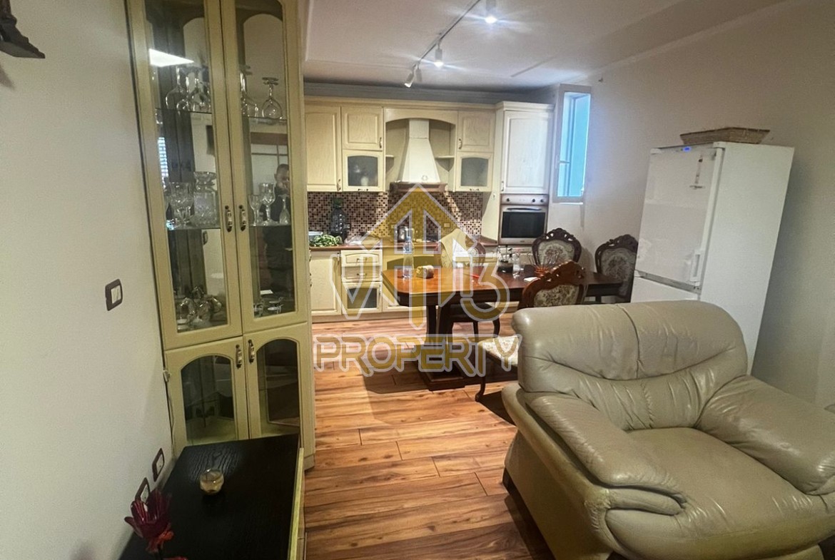 Apartamenti ndodhet prane Bulevardit Kryesor. Ka nje siperfaqe siperfaqe totale prej 100 m2 dhe eshte i organizuar ne nje soggiorno, se bashku me kendin e kuzhines, dy dhoma gjumi, nje tualet dhe nje verande. Apartamenti eshte i mobiluar me te gjitha kushtet e nevojshme. Zona ne te cilen ndodhet eshte e qete dhe ofron te gjitha fasilitetet. Per nje vizite ne prone apo ne prona te ngjashme na kontaktoni.