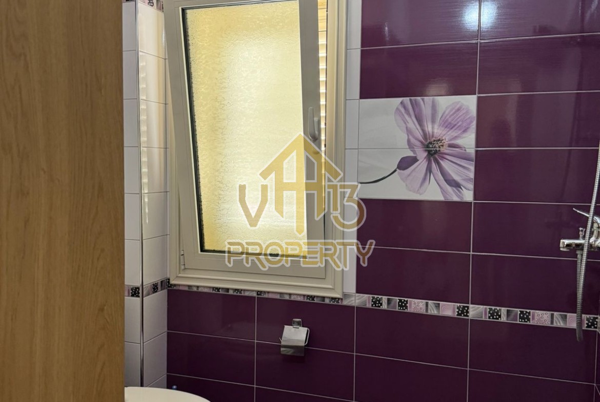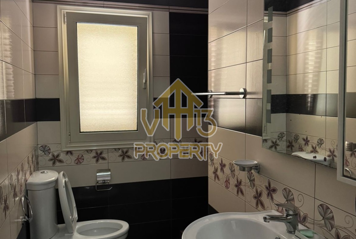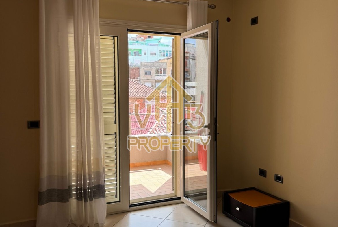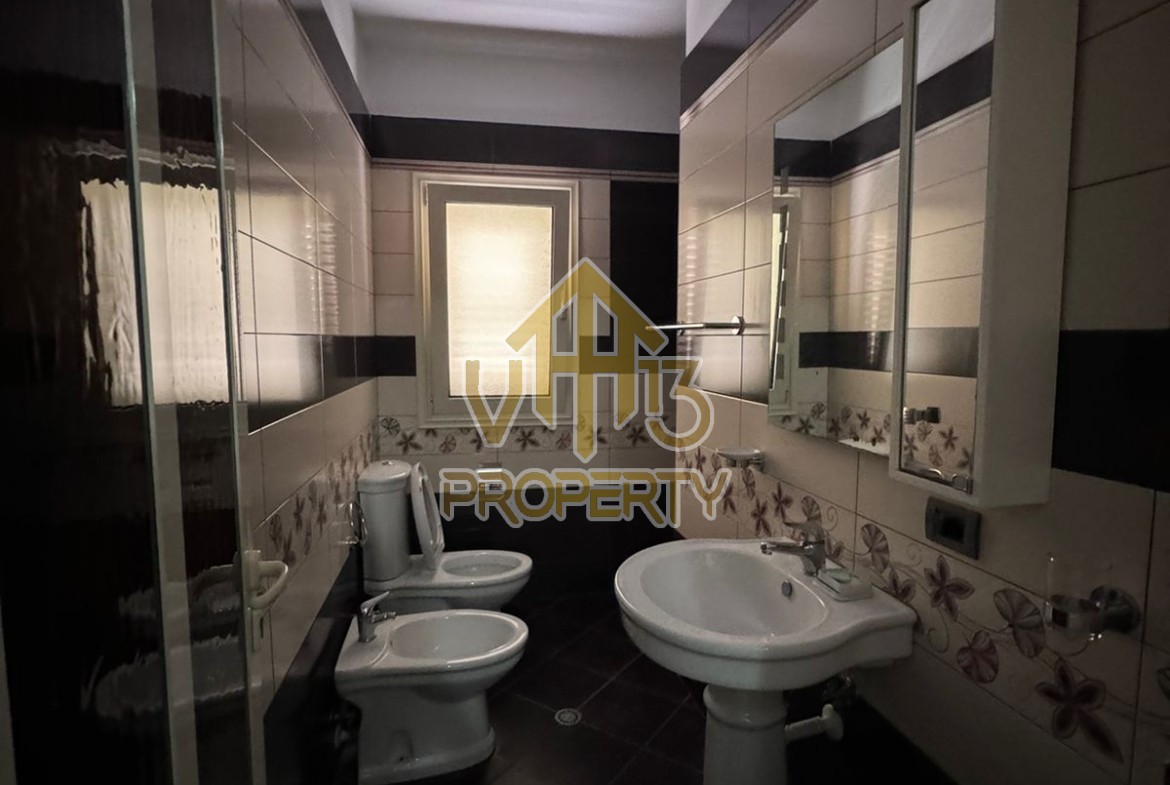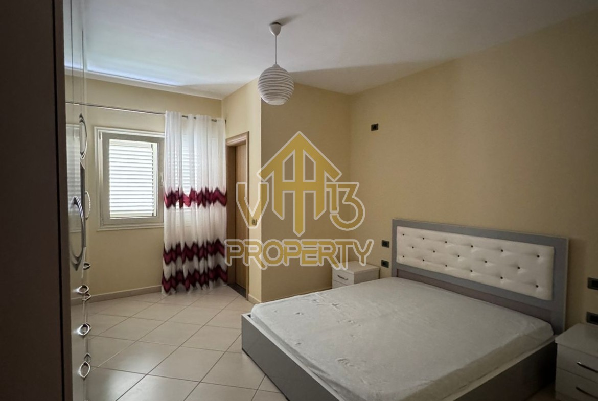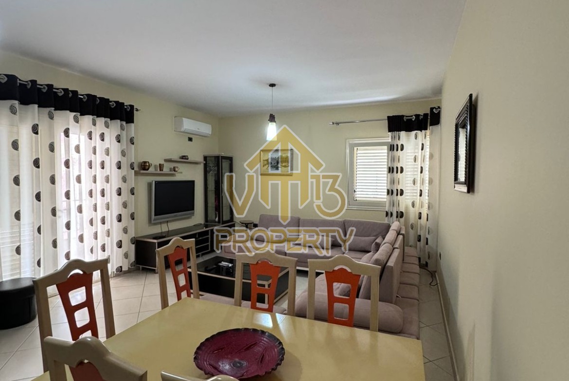 Apartamenti ndodhet ne lagjen 12, prane Kazazit. Ka nje siperfaqe siperfaqe totale prej 109 m2 dhe eshte i organizuar ne nje soggiorno, se bashku me kendin e kuzhines, dy dhoma gjumi, dy tualete dhe nje ballkon. Apartamenti eshte i mobiluar me te gjitha kushtet e nevojshme. Zona ne te cilen ndodhet eshte e qete dhe ofron te gjitha fasilitetet. Per nje vizite ne prone apo ne prona te ngjashme na kontaktoni.