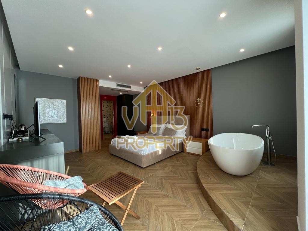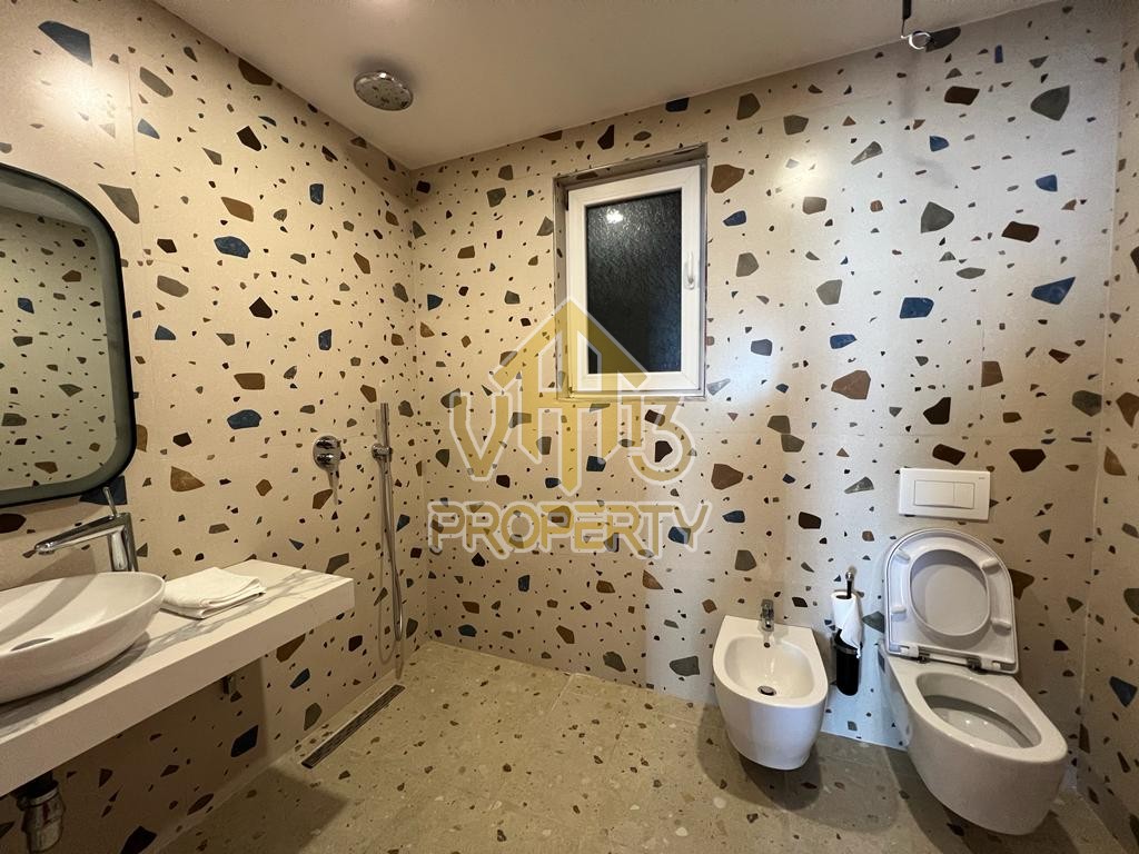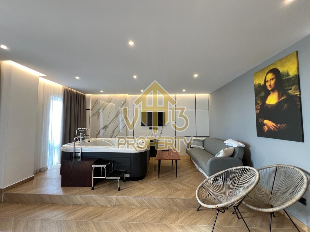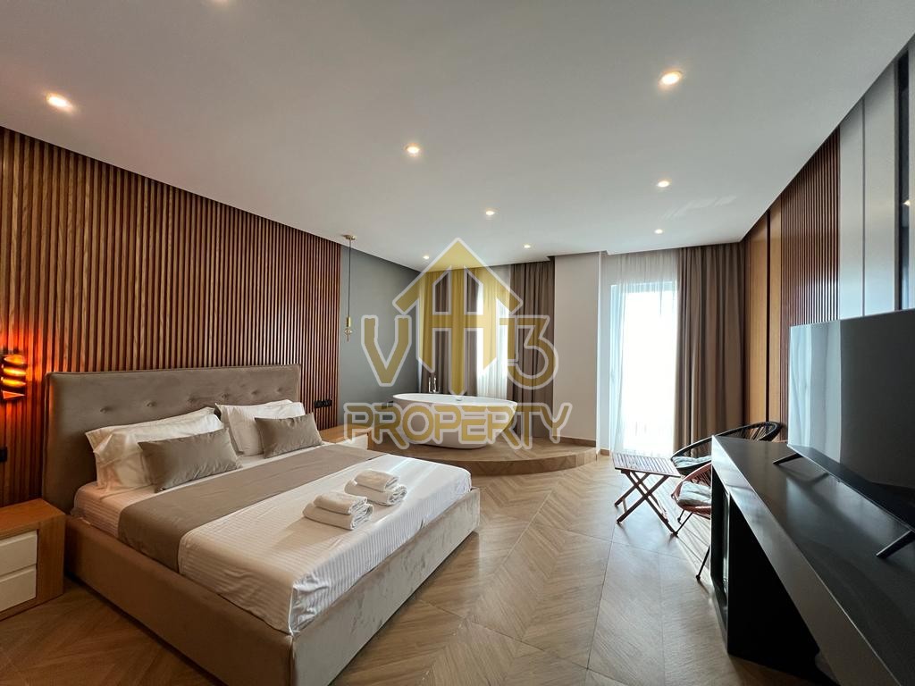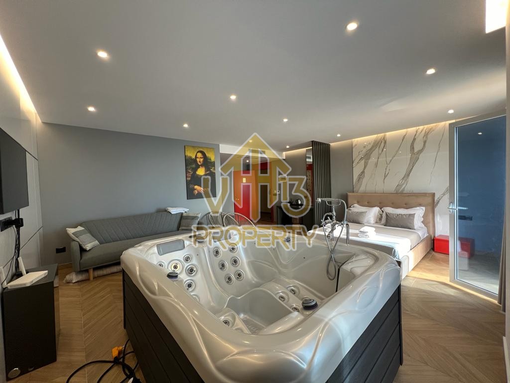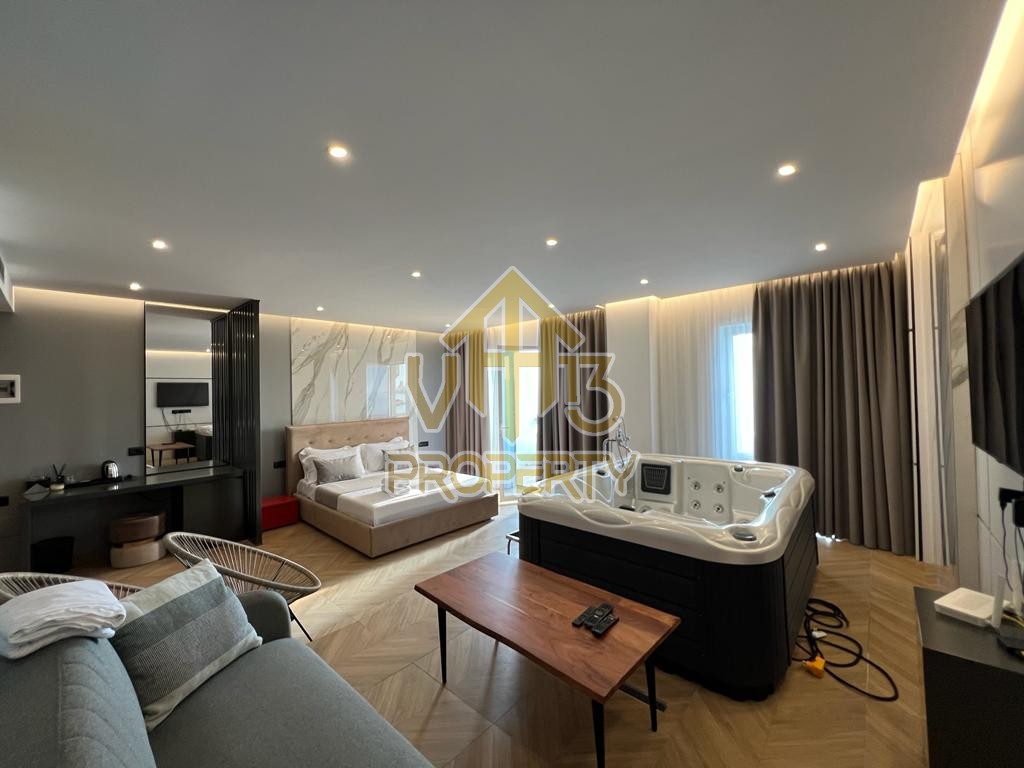 Suitat ndodhet ne nje nga zonat me te bukura te qytetit. Kane nje siperfaqe totale prej 123 m2 dhe siperfaqe te brendshme prej 110 m2. Ndodhen në nje pallat te ri, te pajisur me ashensor , te organizuara ne nje hapesire open space, nje tualet dhe nje ballkon me pamje ballore nga deti. Apartamenti eshte totalisht i arreduar te nje stili modern, xhakuzi, sistem ngrohje , sistm ndricimi, tavane te varura. Disponon dokumentacion te rregullt hipotekor. Per nje vizite ne prone apo ne prona te ngjashme na kontaktoni.