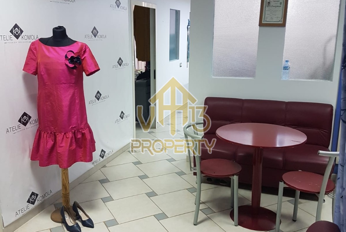 Ambienti ndodhet prane bulevardit kryesor ne katin e 2 te nje pallati te ri, te mirembajtur me administrim, ku dy katet e para kane hyrje te vecuar nga ajo e banimit. Ka nje siperfaqe totale prej 93 m2 dhe organizohet ne open space i cili per momentin eshte i ndare me punime kartonxhesi dhe nje tualet. Ambienti shitet i pa mobiluar por ekziston mundesia te shitet dhe si biznes se bashku me mjetet dhe materialet e punes. Eshte i pajisur me certifikate te rregullt pronesie. Per me shume informacion apo nje vizite ne prone na kontaktoni.