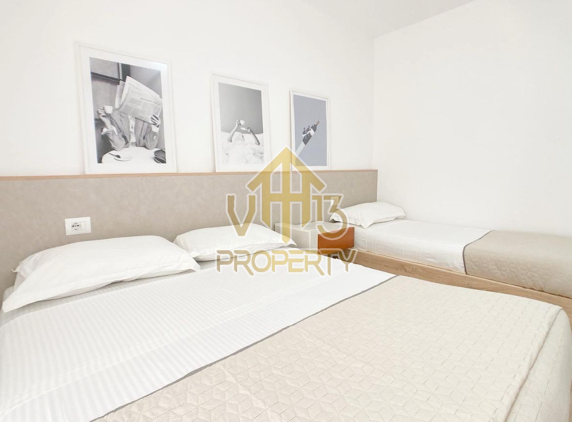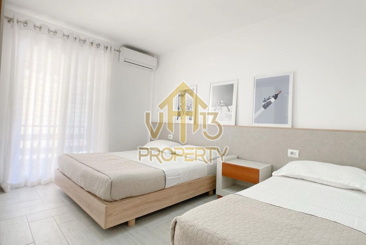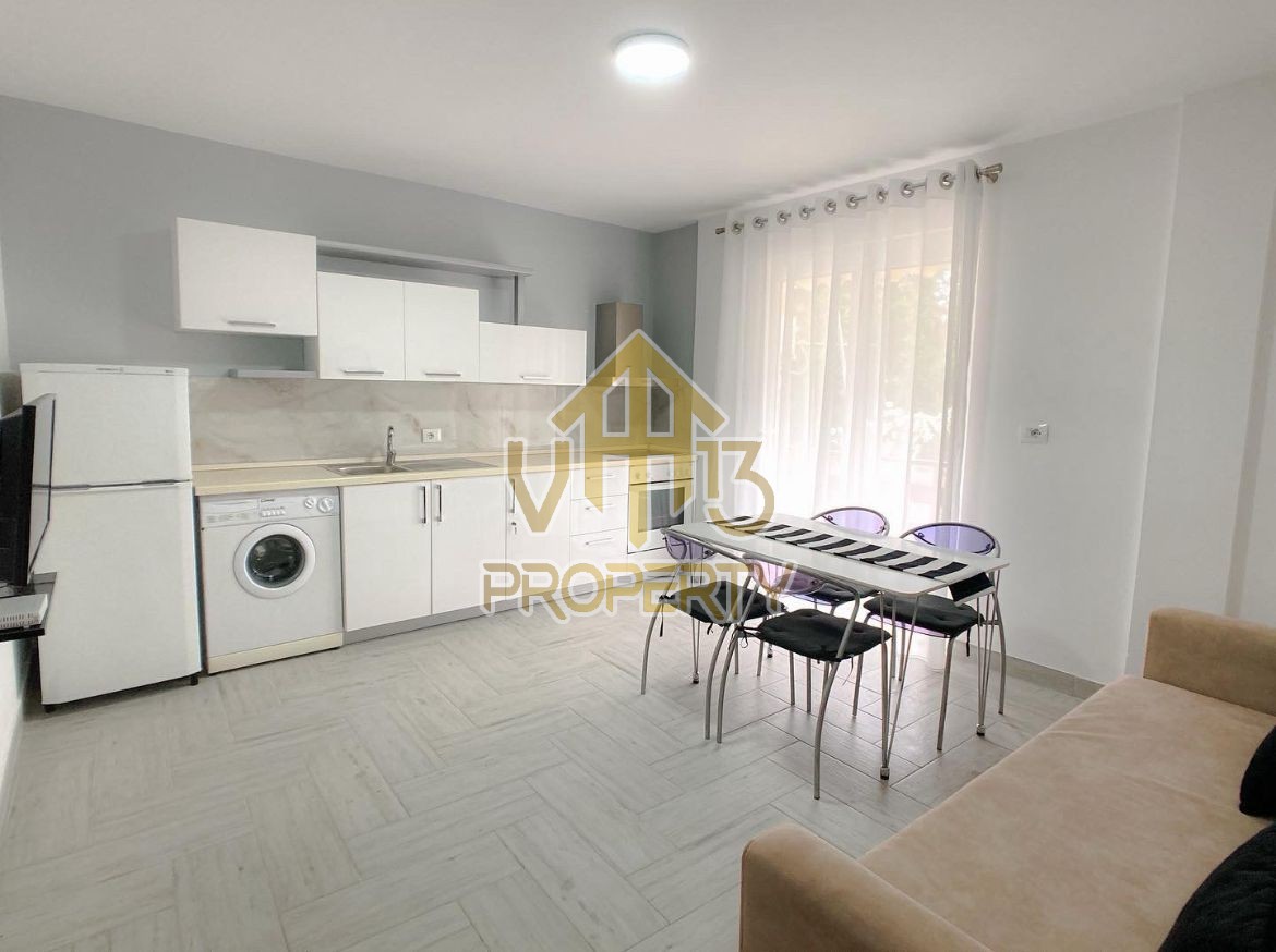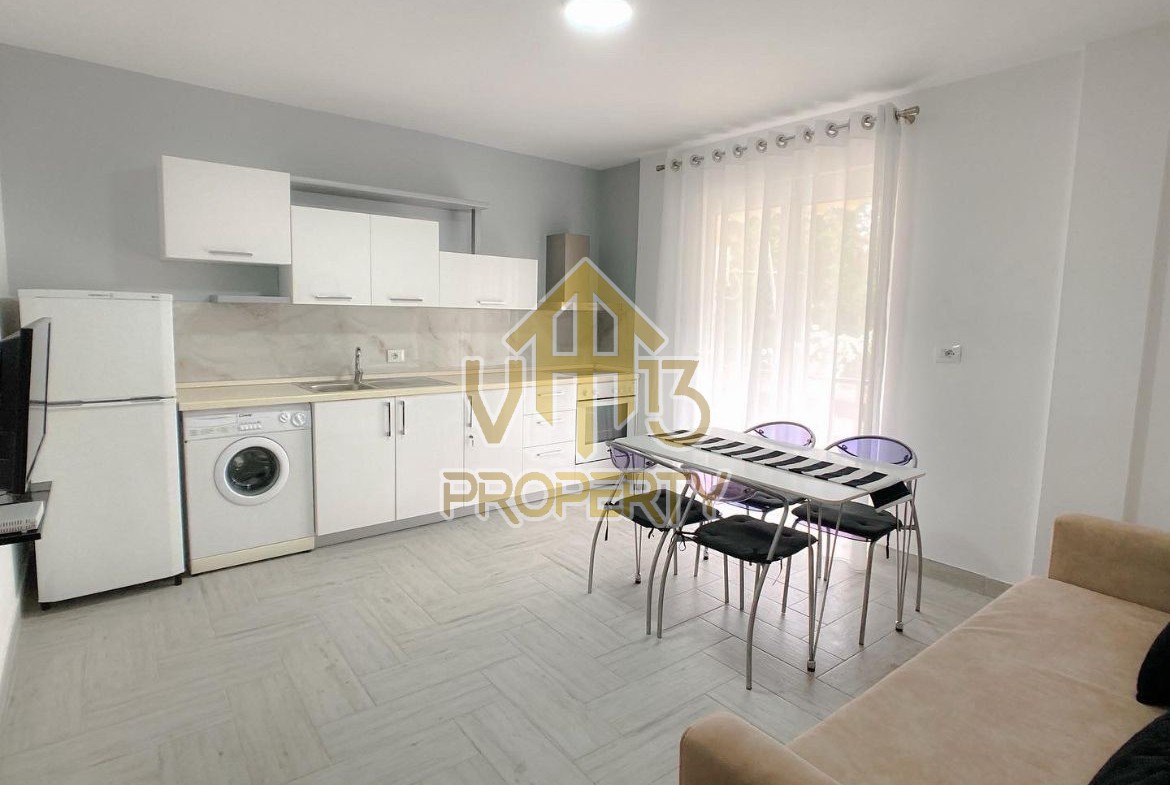 Apartamenti ndodhet ne nje nga zonat me relaksuese dhe te bukura te qytetit. Ka nje siperfaqe te brendshme prej 50 m2 dhe ndodhet ne katin e pare banim te nje pallati te ri pa ashensor. Eshte i organizuar ne nje koridor i cili ben shperndarjen ne dhomen e ndenjes se bashku me kendin e kuzhines, nje dhome gjumi, nje tualet dhe nje ballkon. Apartamenti eshte i arreduar totalisht i nje stili modern deri ne detajet me te vogla. Zona ne te cilen ndodhet eshte zona me e qete midis pishave, shume prane detit, ideale per pushimet tuaja. Per nje shoqerim ne prone ju ftojme te na kontaktoni!