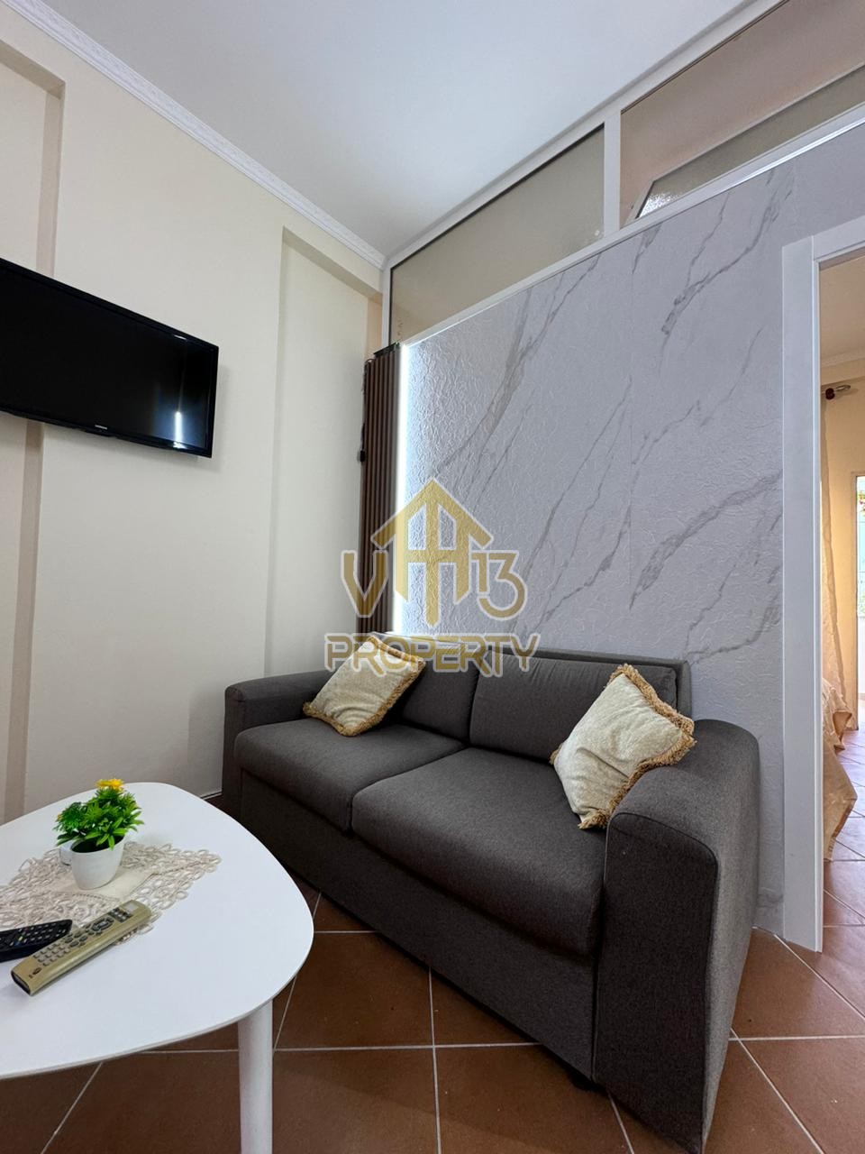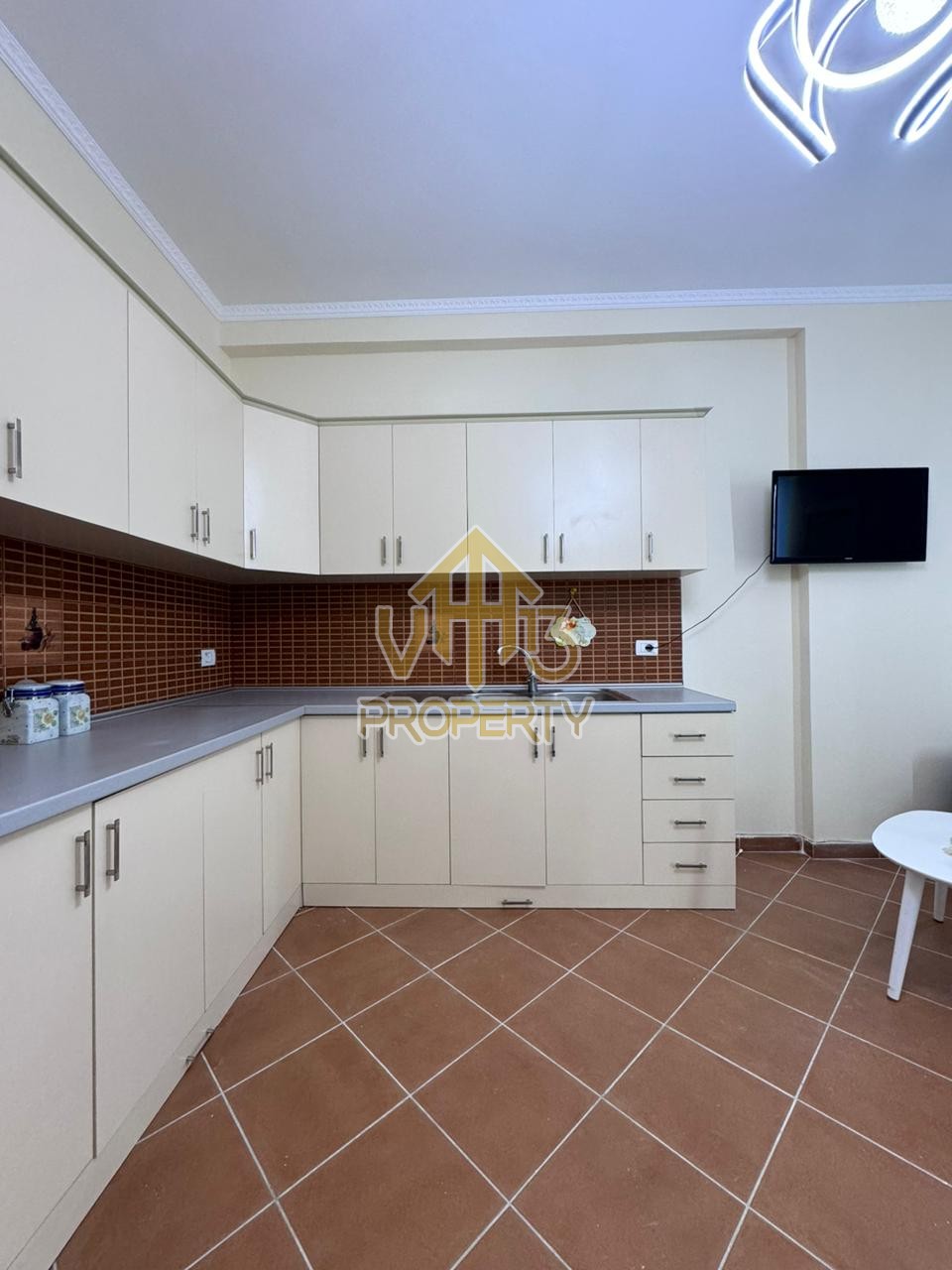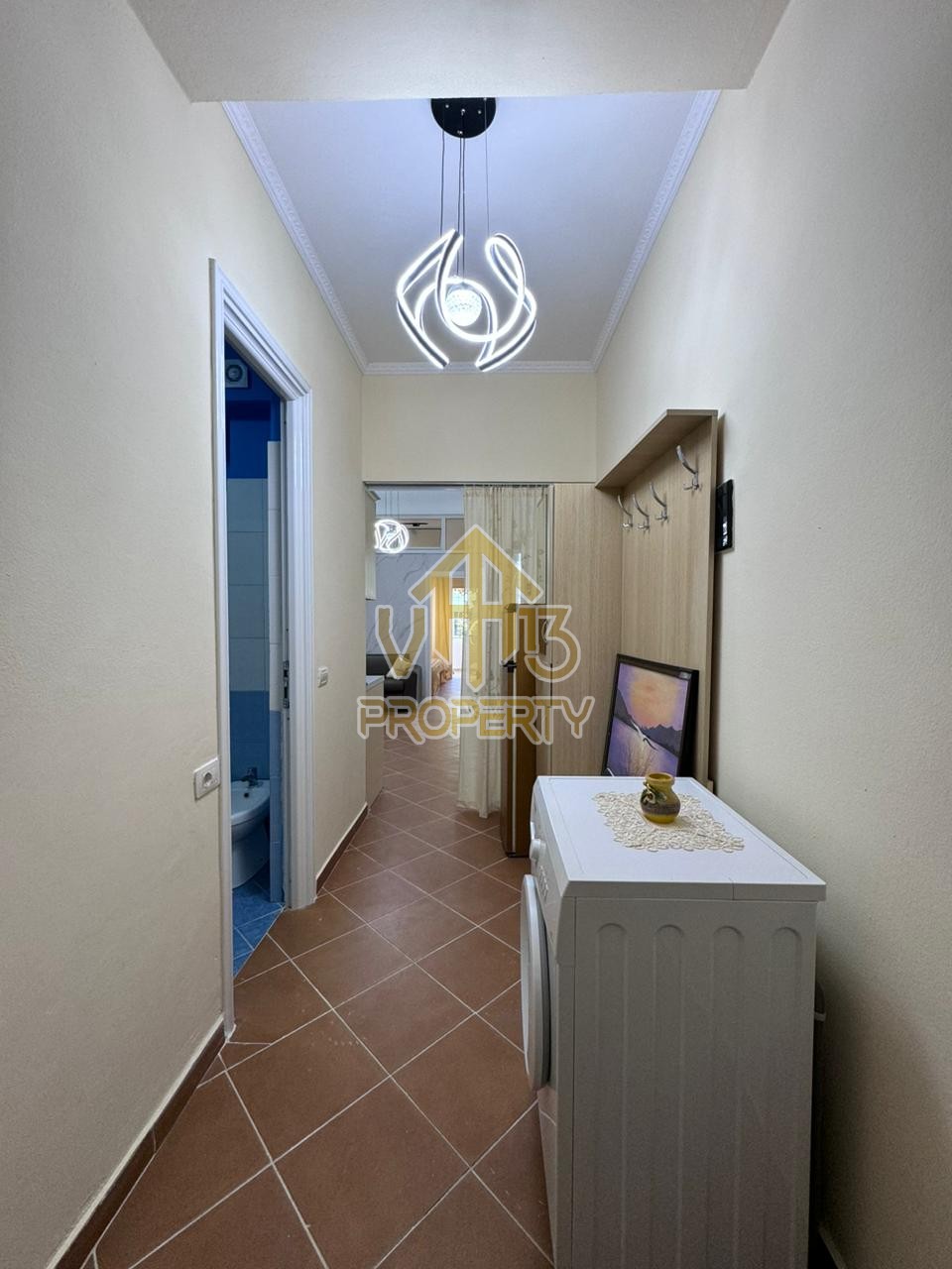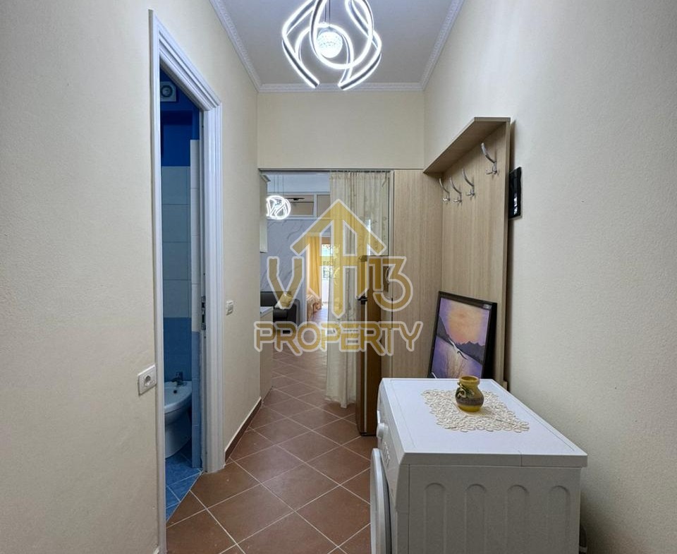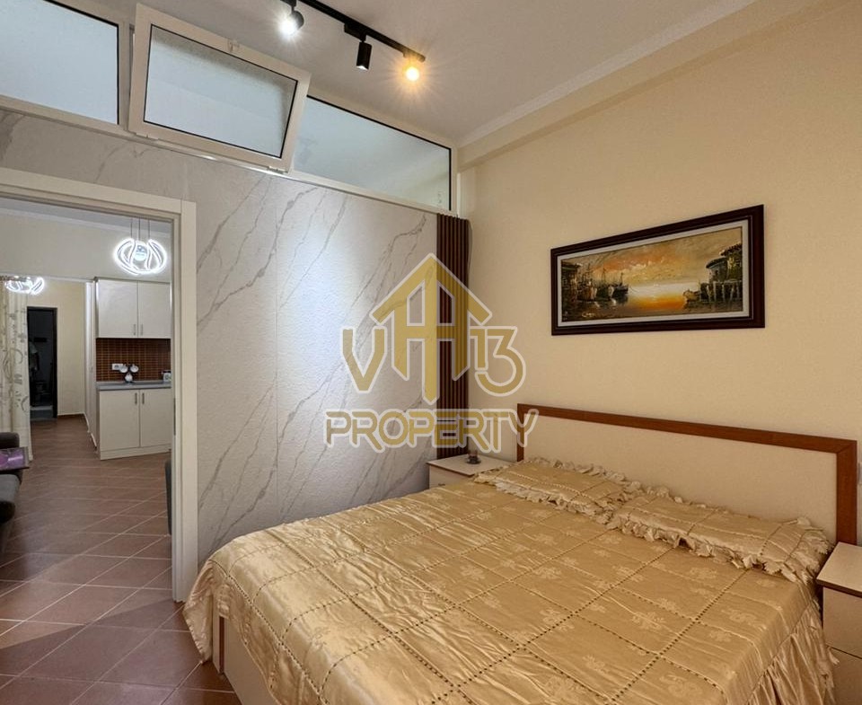 Apartamenti ne nje nga zonat me te qeta te qytetit. Ka nje siperfaqe neto prej 50 m2. Ndodhet në katin e pare te nje pallat te ri, te pajisur me ashensor , i organizuar ne nje dhome ndenje se bashku me kendin e kuzhines, nje dhome gjumi, nje tualet dhe nje ballkon. Apartamenti eshte totalisht i arreduar dhe disponon dokumentacion te rregullt hipotekor. Per nje vizite ne prone apo ne prona te ngjashme na kontaktoni.