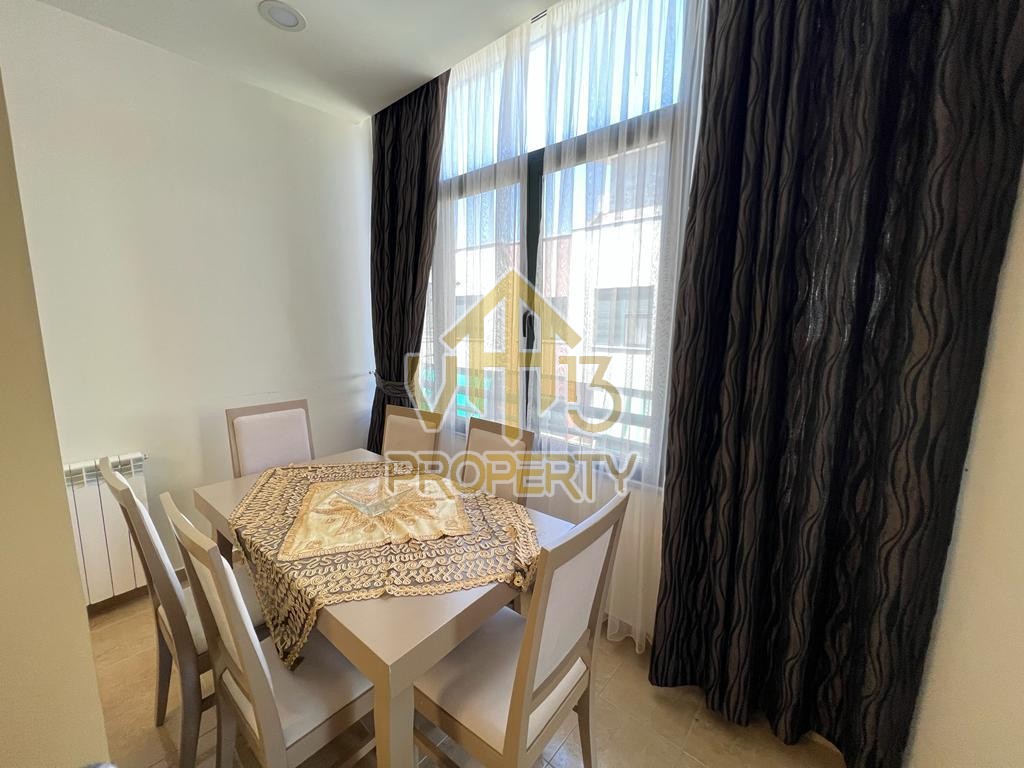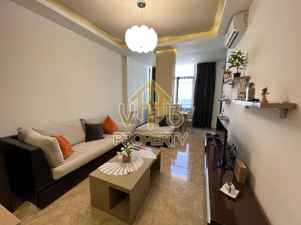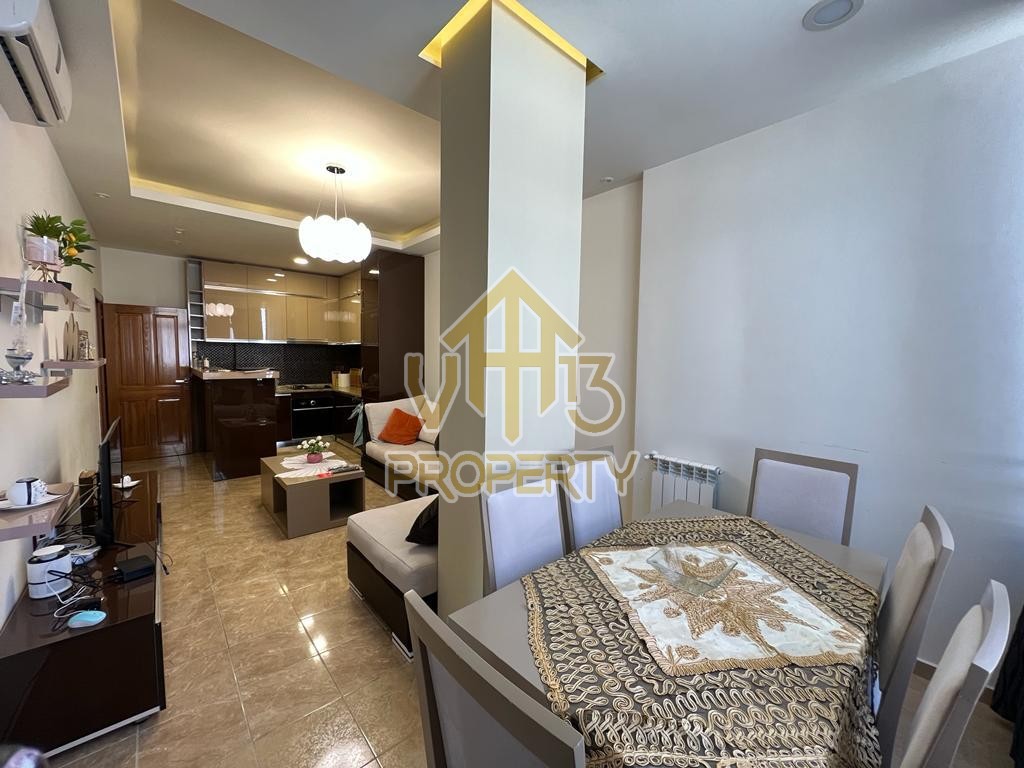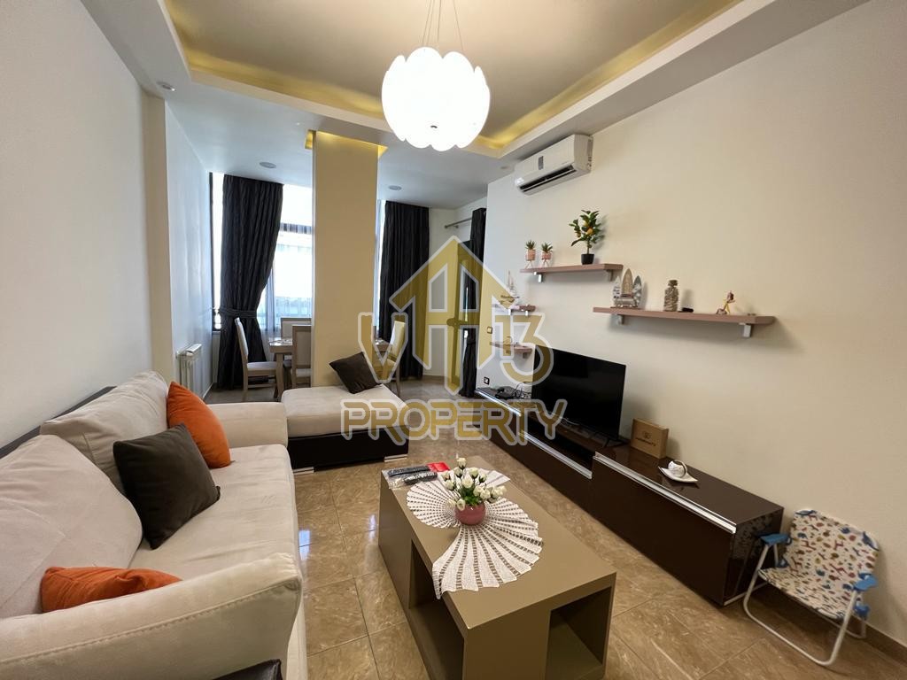Apartamenti ndodhet ne nje nga zonat me te bukura te qytetit, midis pishave dhe qetesise absolute. Organizuar ne nje dhome ndenje se bashku me kendin e kuzhines, nje dhoma gjumi, nje tualet, dhe nje ballkon. Apartamenti eshte totalisht i arreduar deri ne detaje te nje stili modern, sistem ndricimi, punime gipsi, sistem kondicionimi, tavane te varura. Ndodhet ne katin e katert te nje pallati te ri me administrim te rregullt, pa ashensor. Apartamenti ka nje siperfaqe te brendshme prej 60 m2 dhe siperfaqe totale prej 72 m2.Disponon dokumentacion te rregullt hipotekor. Per nje shoqerim ne prone ju ftojme te na kontaktoni