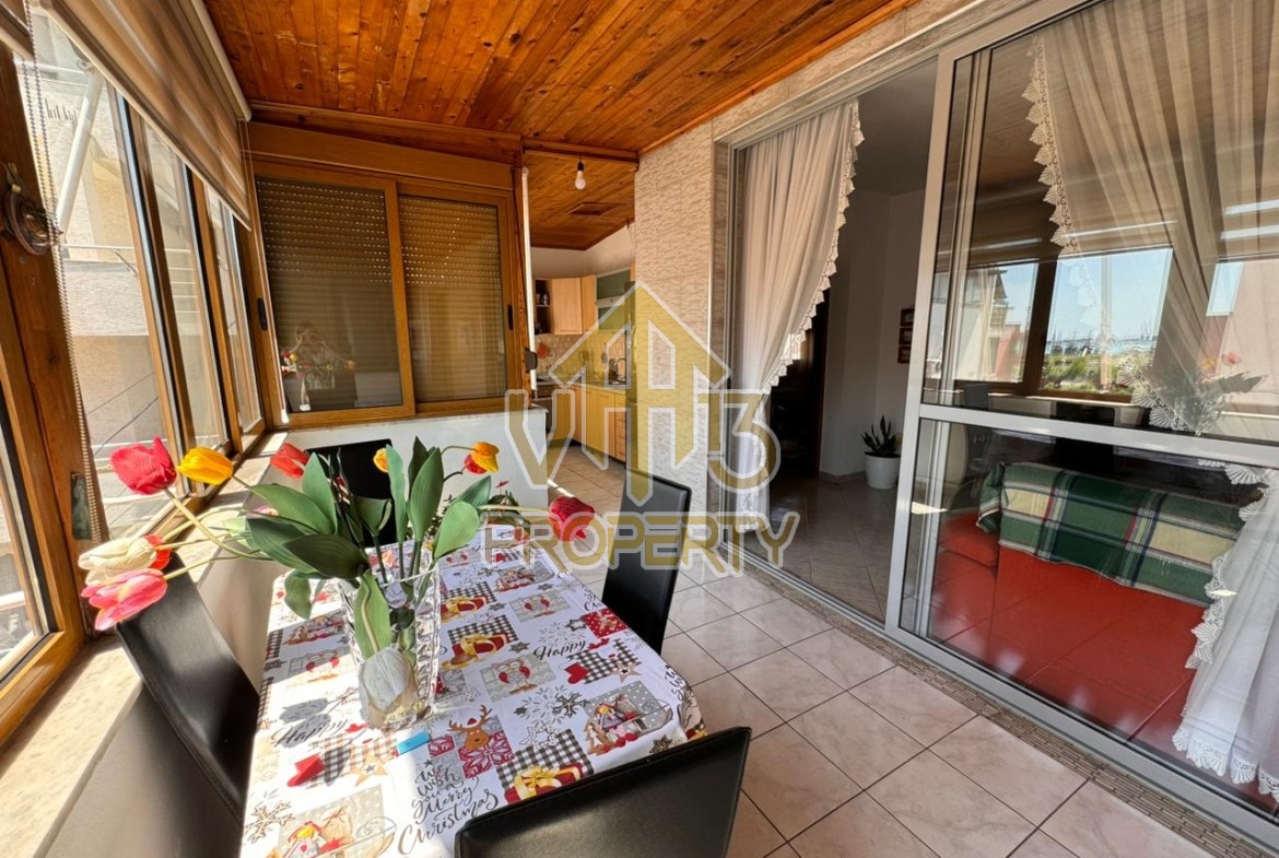 Apartamenti organizohet nga korridori hyrës, në ambientin e ndenjes së bashku me këndin e gatimit, dy dhoma gjumi, nje tualet dhe nje ballkon me pamje pjeserisht nga porti. Apartamenti eshte i mobiluar dhe ndodhet në katin e katert të një pallati të ri, me mirembajtje dhe ashensor. Zona në të cilën ndodhet apartamenti është një ndër zonat më të preferuara per banim. Sipërfaqja totale e apartamentit eshte 120 m2. Disponon dokumentacion te rregullt hipotekor. Per nje vizite ne prone apo ne prona te ngjashme na kontaktoni!