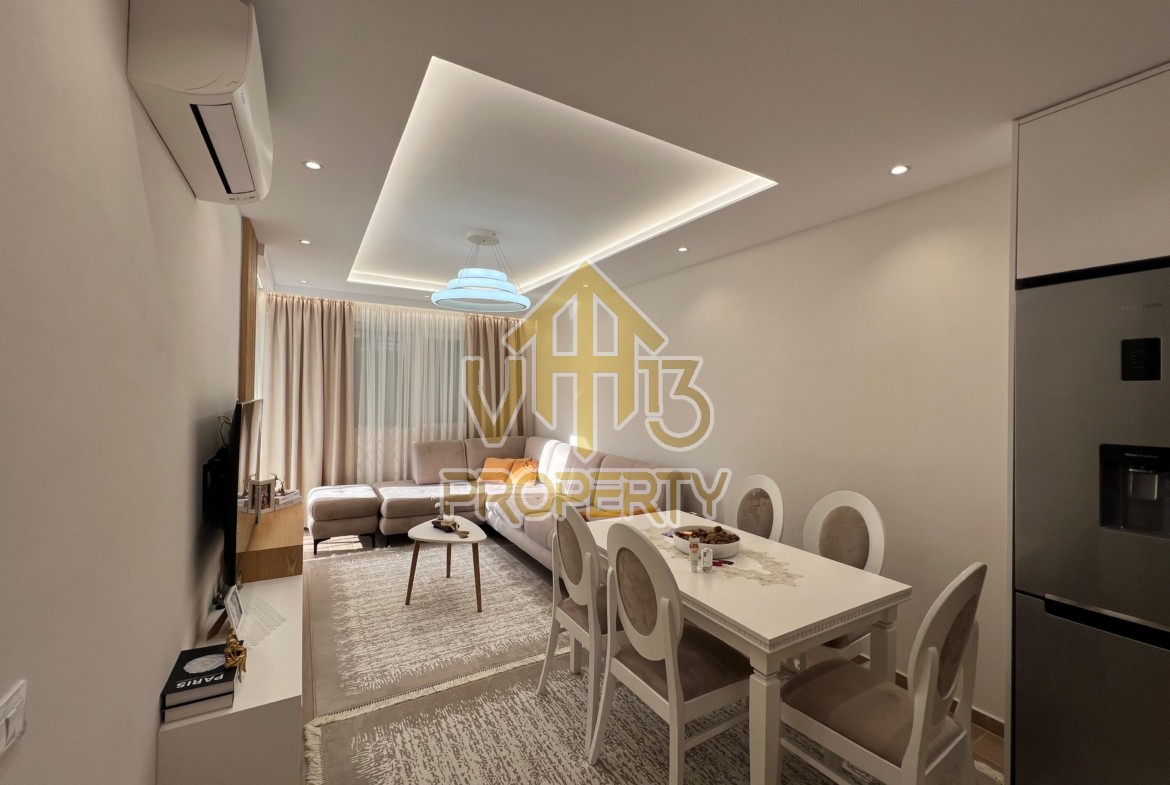 Apartamenti ndodhet ne Qerret, nje nga zonat me te preferuara dhe me te qeta te qytetit. Ka nje siperfaqe totale 75 m2 dhe siperfaqe te brendshme 65 m2. Eshte i organizuar ne nje dhome ndenje se bashku me kendin e kuzhines, dy dhoma gjumi, nje tualet dhe nje ballkon. Apartamenti ka nje mobilim cilesor dhe ofron te gjitha komoditetet per nje jetese te mire. Pallati ku ndodhet apartamenti eshte pjese e nje kompleksi super te mirembajtur, i rrethuar me lulishte. Disponon dokumentacion te rregullt hipotekor. Per nje vizite ne prone apo ne prona te ngjashme na kontaktoni.
