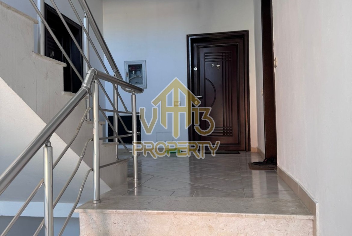 Apartamenti ka nje siperfaqe te brendshme prej 99 m2. Ndodhet ne katin e peste te nje pallati te mirembajtur mbi shinat, i organizuar ne nje dhome ndenje se bashku me kendin e kuzhines, dy dhome gjumi, nje tualet dhe nje verande. Apartamenti eshte totalisht i arreduar, shume i pershtatshem per te kaluar pushimet si dhe per ta perdoror per investim. Disponon dokumentacion te rregullt hipotekor. Per nje vizite ne prone apo ne prona te ngjashme na kontaktoni.