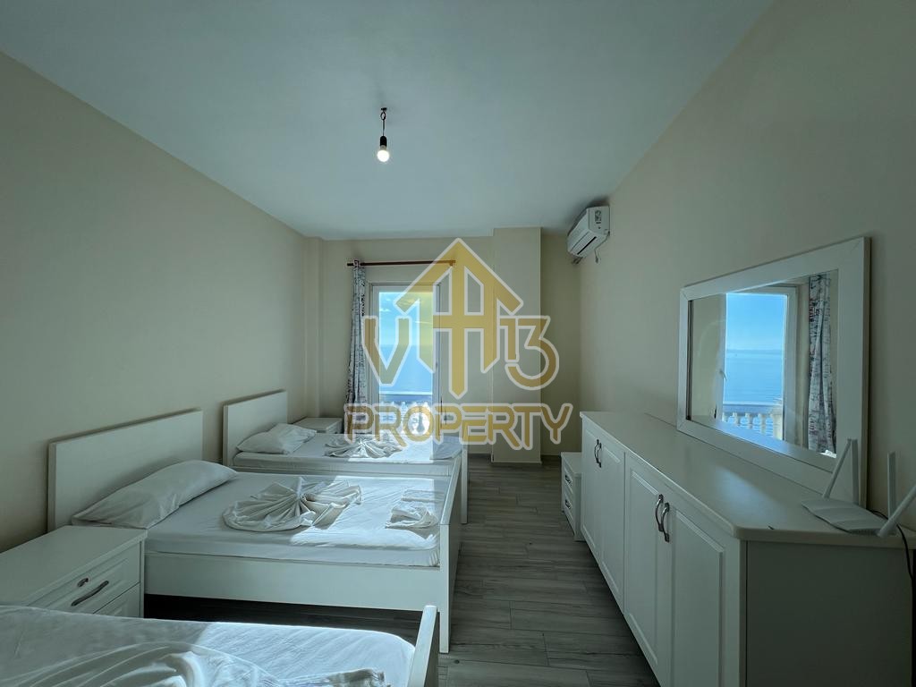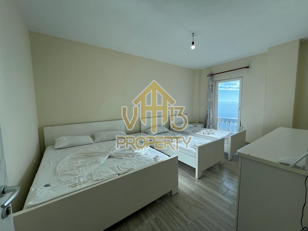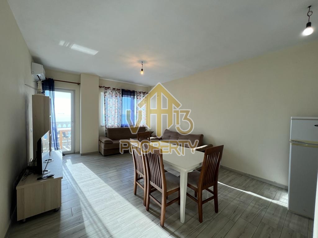 Apartamenti ndodhet ne vije te pare me detin, ne nje nga zonat me te bukura te qytetit. Ka nje siperfaqe totale prej 123 m2. Ndodhet në nje pallat te ri, te pajisur me ashensor , i organizuar ne nje dhome ndenje se bashku me kendin e kuzhines, dy dhoma gjumi, dy tualete dhe nje ballkon me pamje ballore nga deti. Apartamenti eshte totalisht i arreduar te nje stili modern, sistem ngrohje , sistem ndricimi, tavane te varura. Disponon dokumentacion te rregullt hipotekor. Per nje vizite ne prone apo ne prona te ngjashme na kontaktoni.
