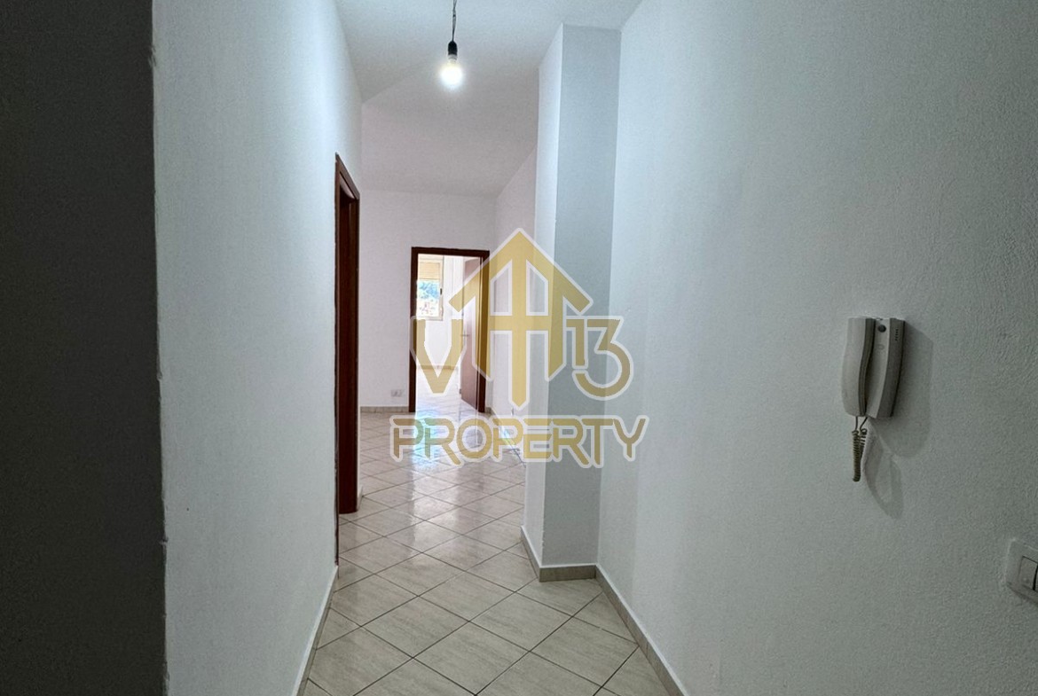 Apartamenti organizohet nga korridori hyrës, në ambientin e ndenjes së bashku me këndin e gatimit, dy dhoma gjumi, nje tualet dhe nje ballkon. Apartamenti ndodhet në katin e katert të një pallati të mirembajtur me ashensor. Cdo hapësirë e brendshme ka ndricim natyral. Zona në të cilën ndodhet apartamenti është një ndër zonat më të preferuara per banim. Pallati ka nje pozicion perfekt, me akses të drejtpërdrejtë ndaj shërbimeve si: shkolla, klinika, supermarkete, bare, banka, transport urban etj. Sipërfaqja totale e apartamentit eshte 90 m2, ndersa siperfaqja e brendshme eshte 83 m2. Gjithashtu, apartamenti disponon garazh+magazine. Per nje vizite ne prone apo ne prona te ngjashme na kontaktoni!