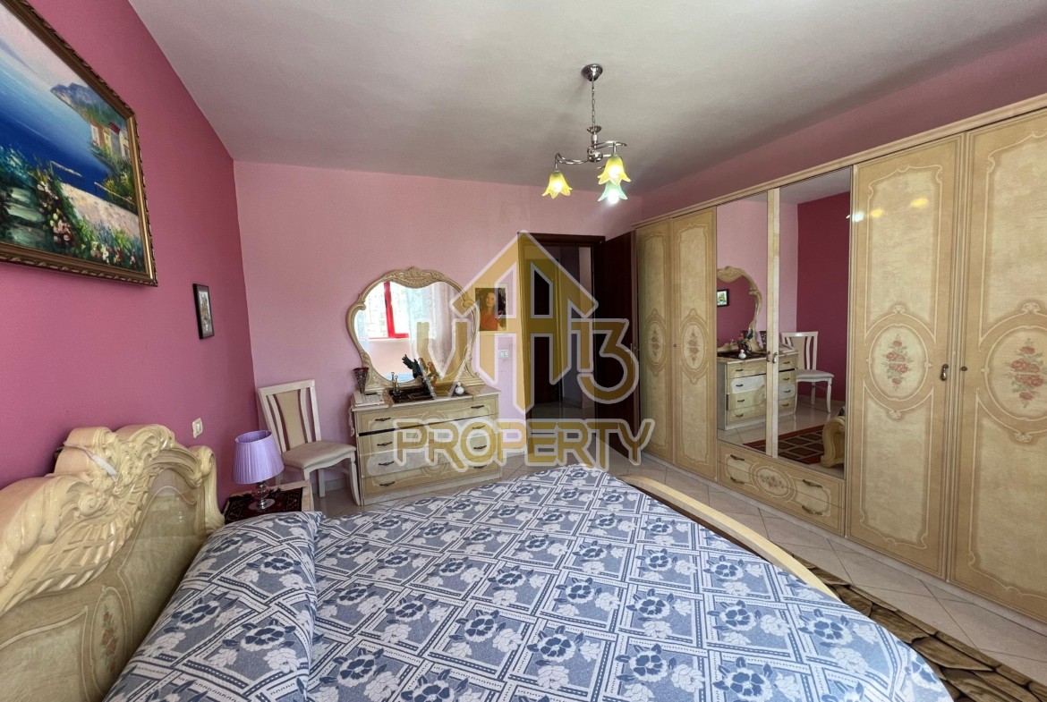 Apartamenti ndodhet ne nje nga zonat me te bukura te qytetit. Ka nje siperfaqe totale prej 163.3 m2 dhe siperfaqe te brendshme 149.6 m2. Ndodhet në katin e trete banim te nje pallat te ri, te pajisur me dy ashensore, i organizuar ne nje soggiorno, kuzhine te vecuar, tre dhoma gjumi, dy tualete. Gjithashtu ka tre ballkone me pamje nga deti. Apartamenti eshte totalisht i arreduar. Disponon dokumentacion te rregullt hipotekor. Per nje vizite ne prone apo ne prona te ngjashme na kontaktoni.