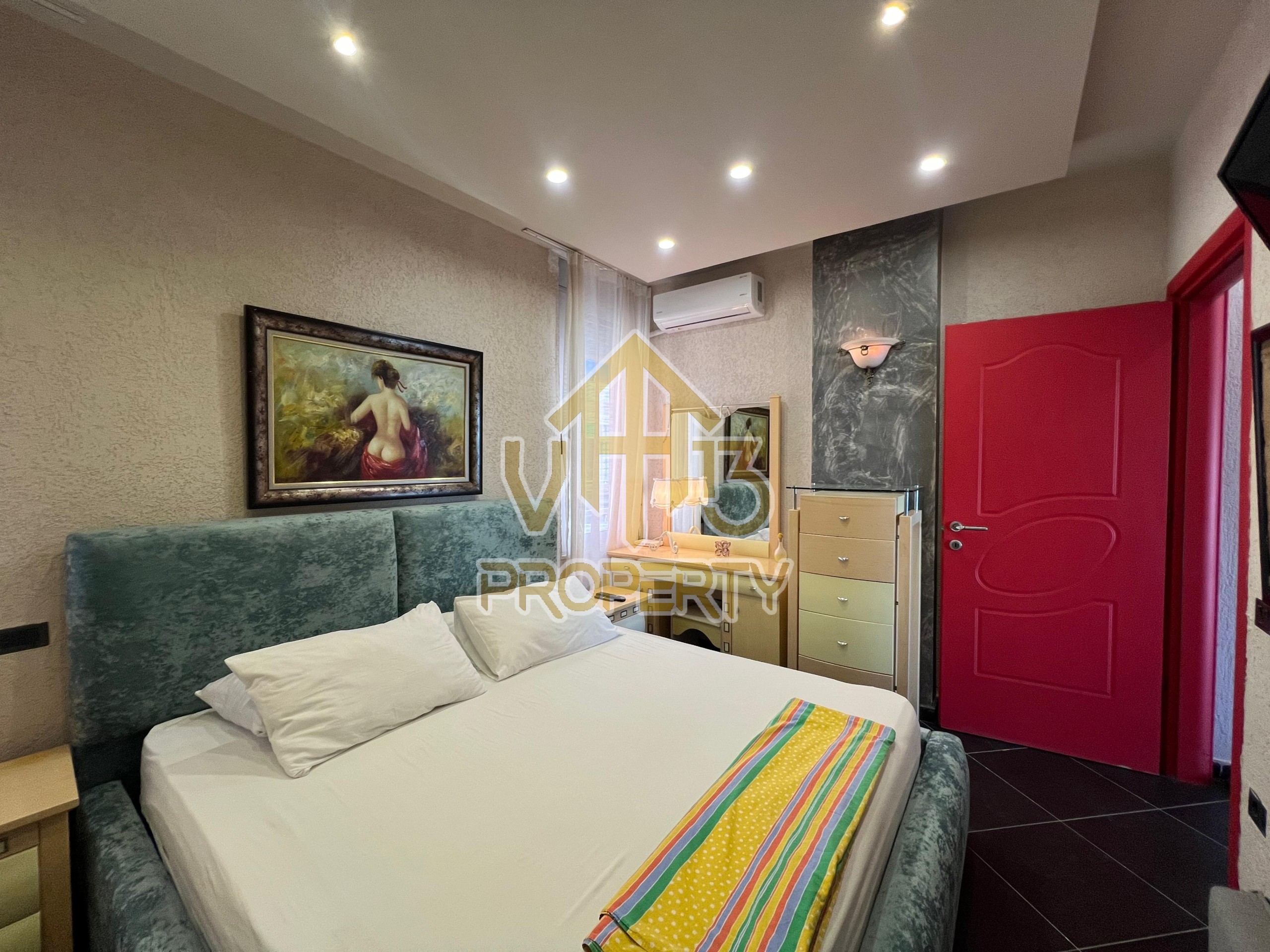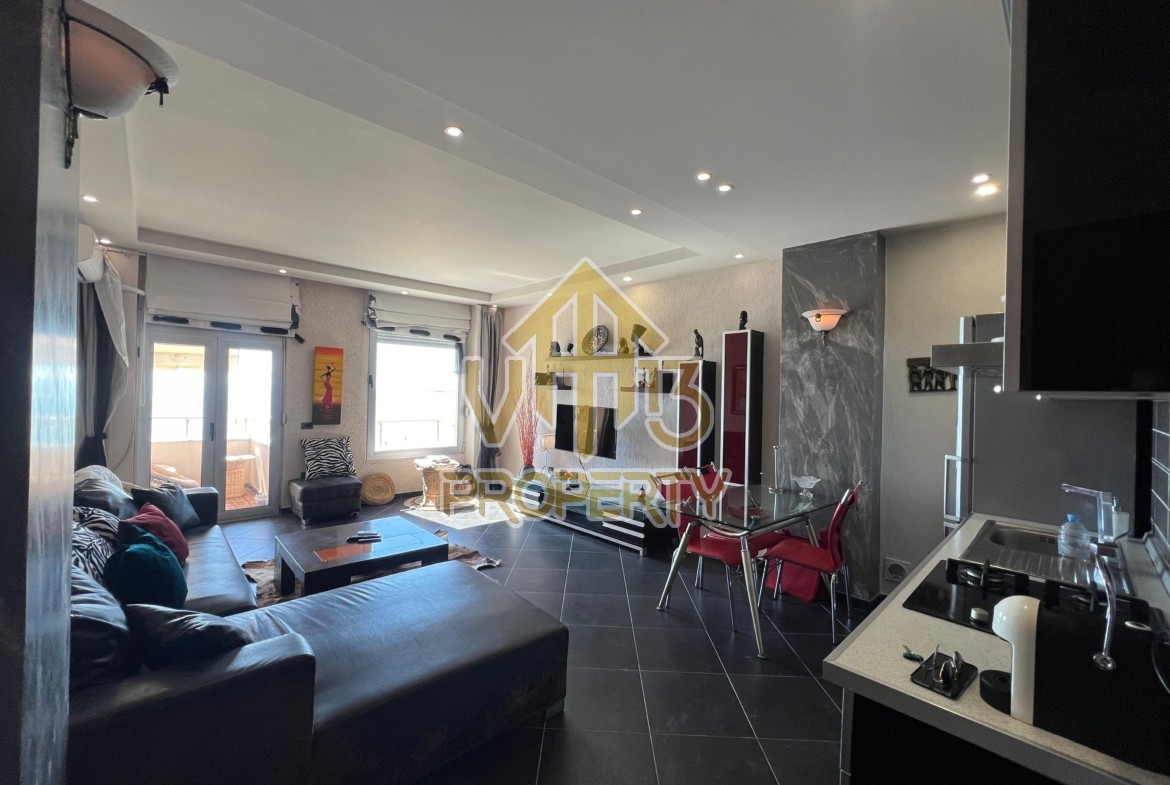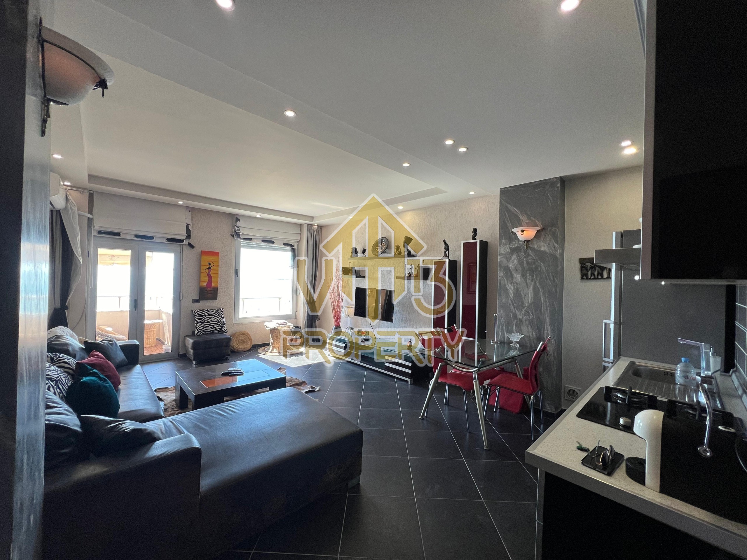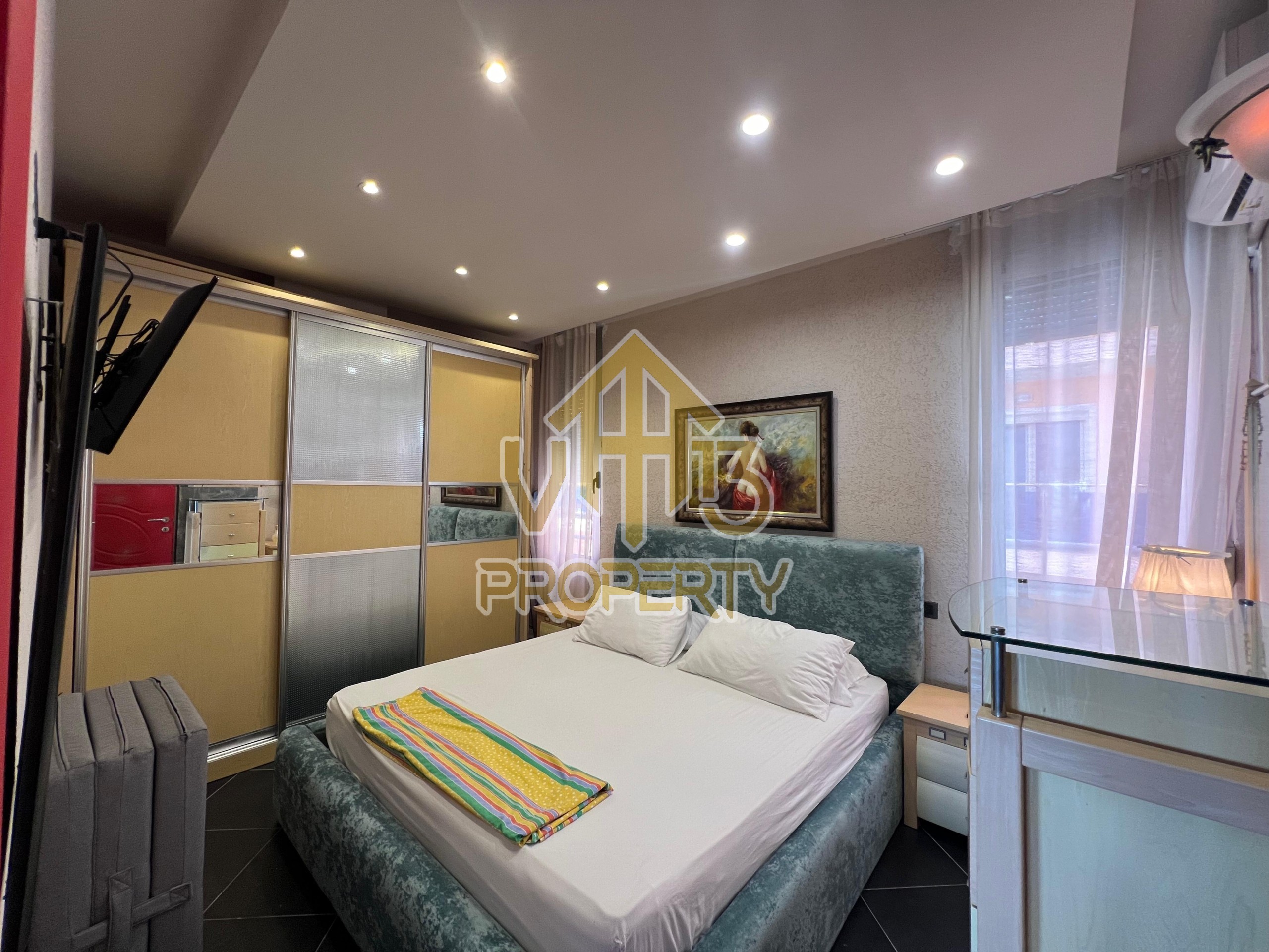 Apartamenti ndodhet ne nje nga zonat me te bukura te bregdetit ne zonen e Plazhit. I organizuar ne nje dhome ndenje se bashku me kendin e kuzines, nje dhome gjumi, nje tualet dhe nje ballkon me pamje ballore nga deti ne vije te pare. Apartamenti eshte totalisht i arreduar deri ne detaje te nje stili modern, sistem ngrohje , sistm ndricimi, tavane te varura, sistem kondicionimi. Ndodhet ne katin e katert te nje pallati te ri te pajisur me ashensor dhe administrim te rregullt. Siperfaqja e apartamentit eshte 66 m2. Disponon dokumentacion te rregullt hipotekor. Per nje shoqerim ne prone ju ftojme te na kontaktoni